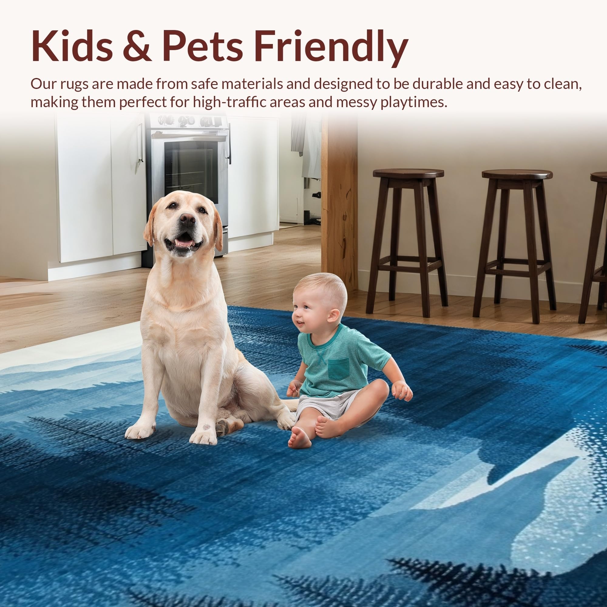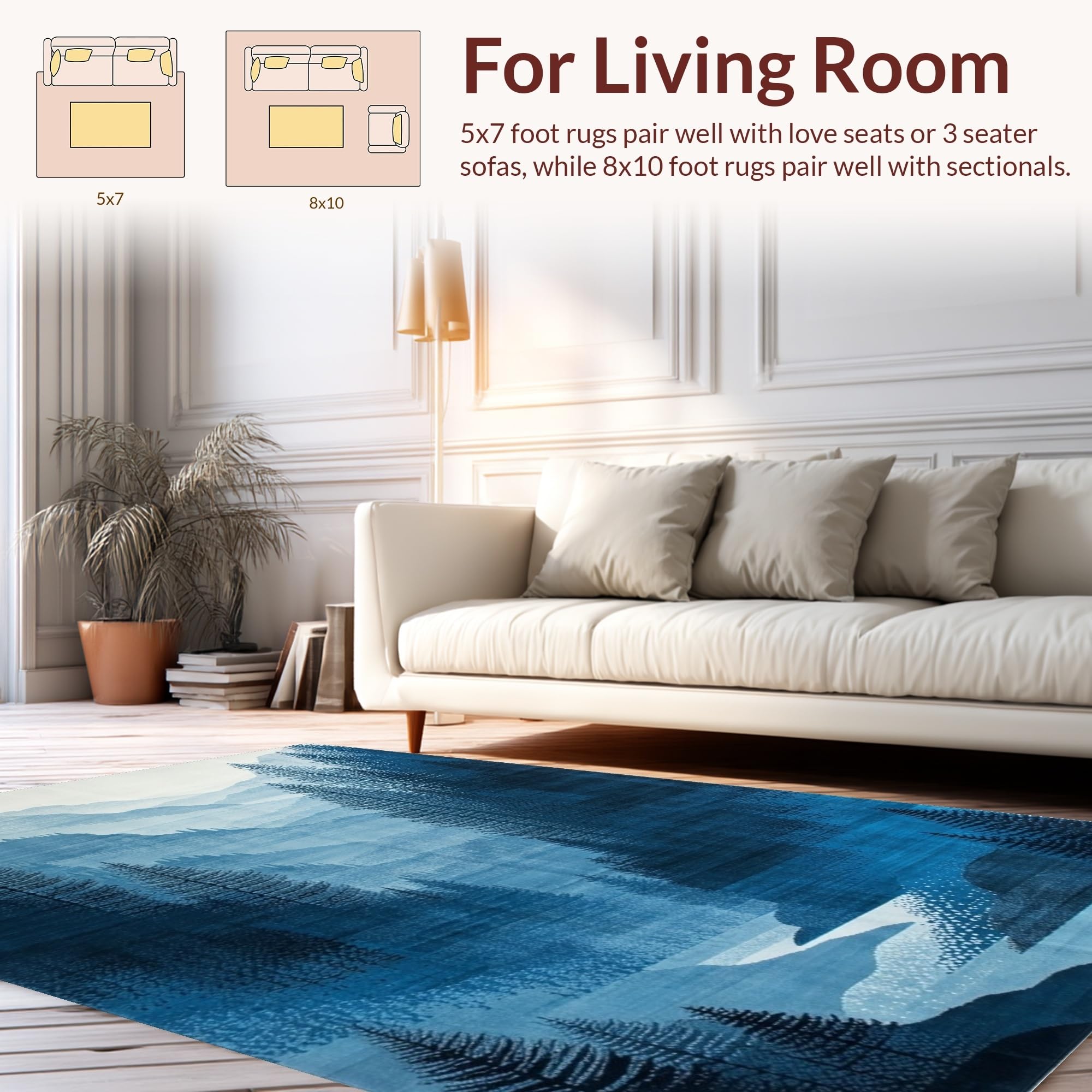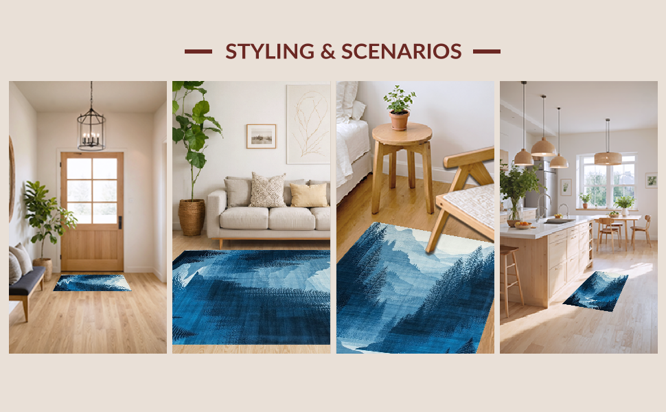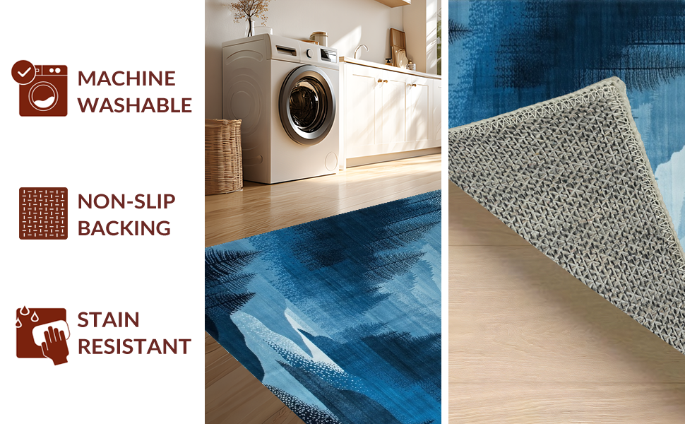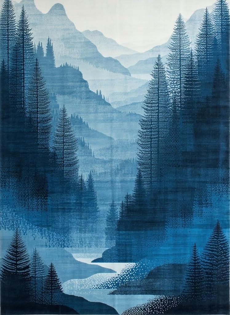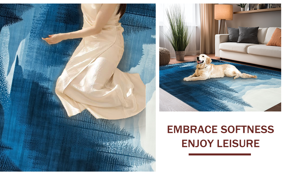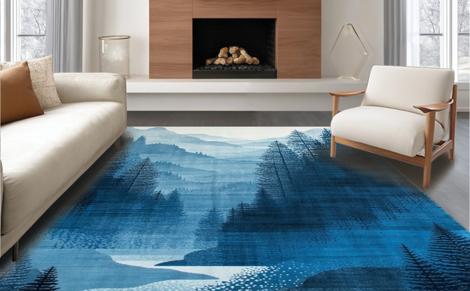 Ultra Soft Area Rug, Non Slip, Stain Resistant, Washable Area Rugs for Living Room, Bedroom, Modern Ethereal Landscape Art(Blue) Overview: