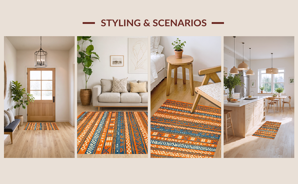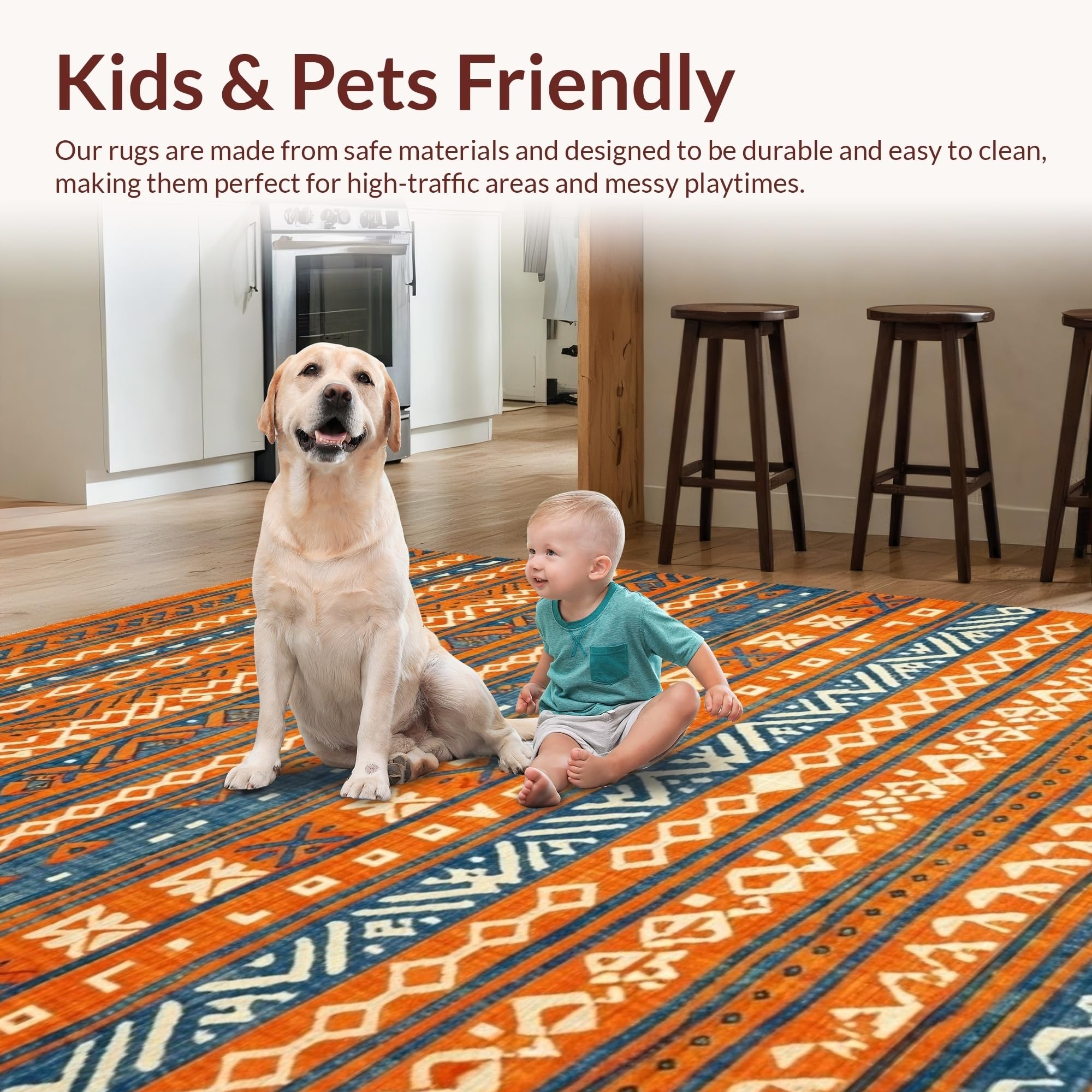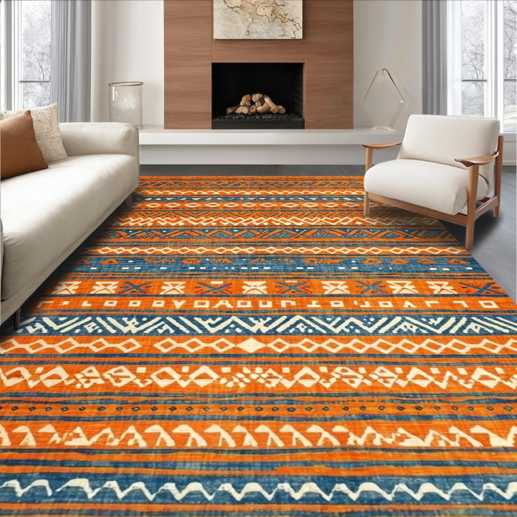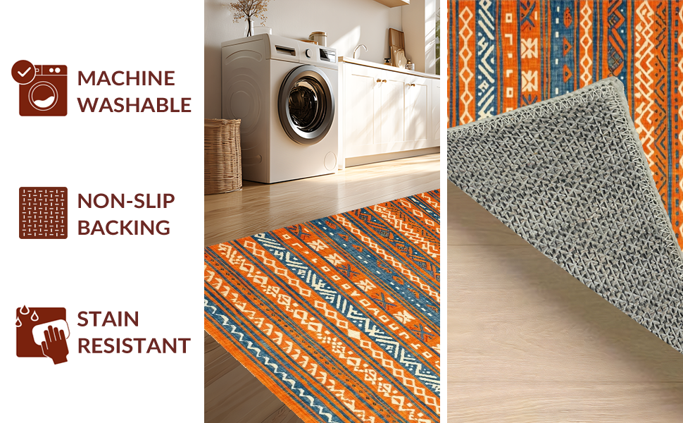 Ultra Soft Area Rug, Non Slip, Stain Resistant, Washable Area Rugs for Living Room, Bedroom, Modern Ethnic Tiled Design(Orange) Overview: