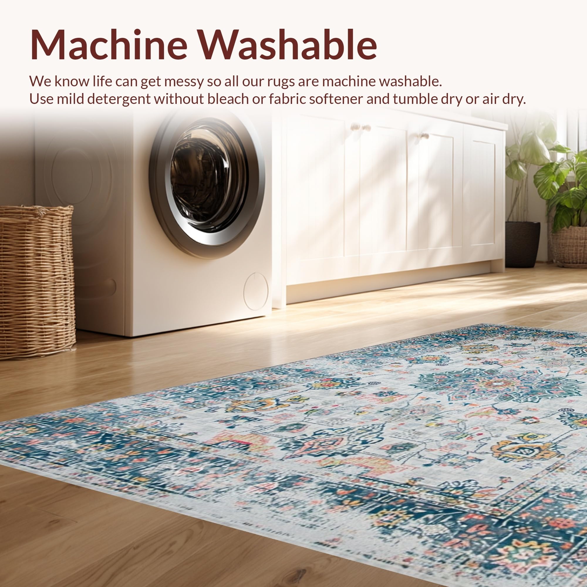 - Machine Washable: Our rugs can be easily thrown in the wash machine.