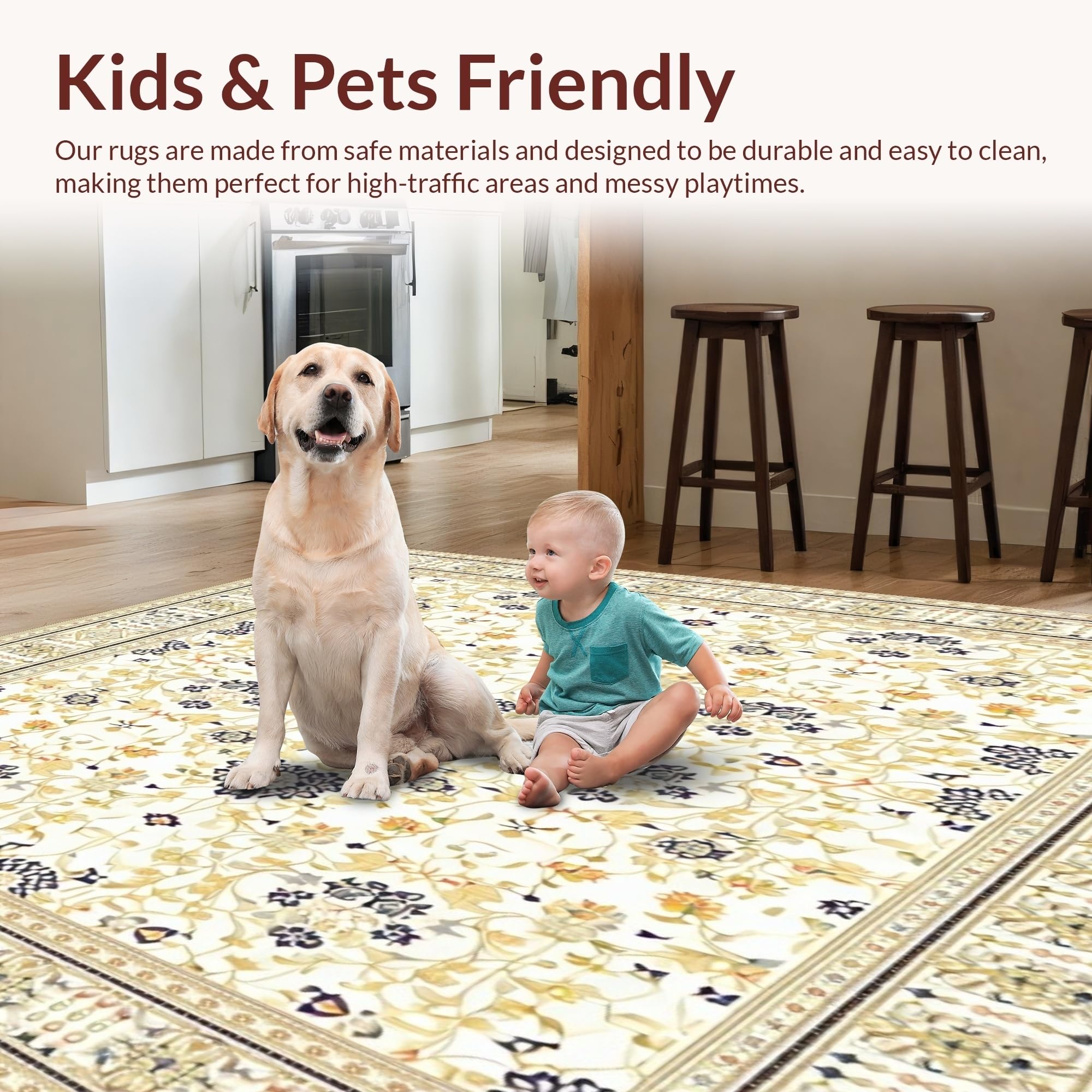 Ultra Soft Area Rug, Non Slip, Stain Resistant, Washable Area Rugs for Living Room, Bedroom, Modern Farmhouse Cream Area(Ivory) Overview: