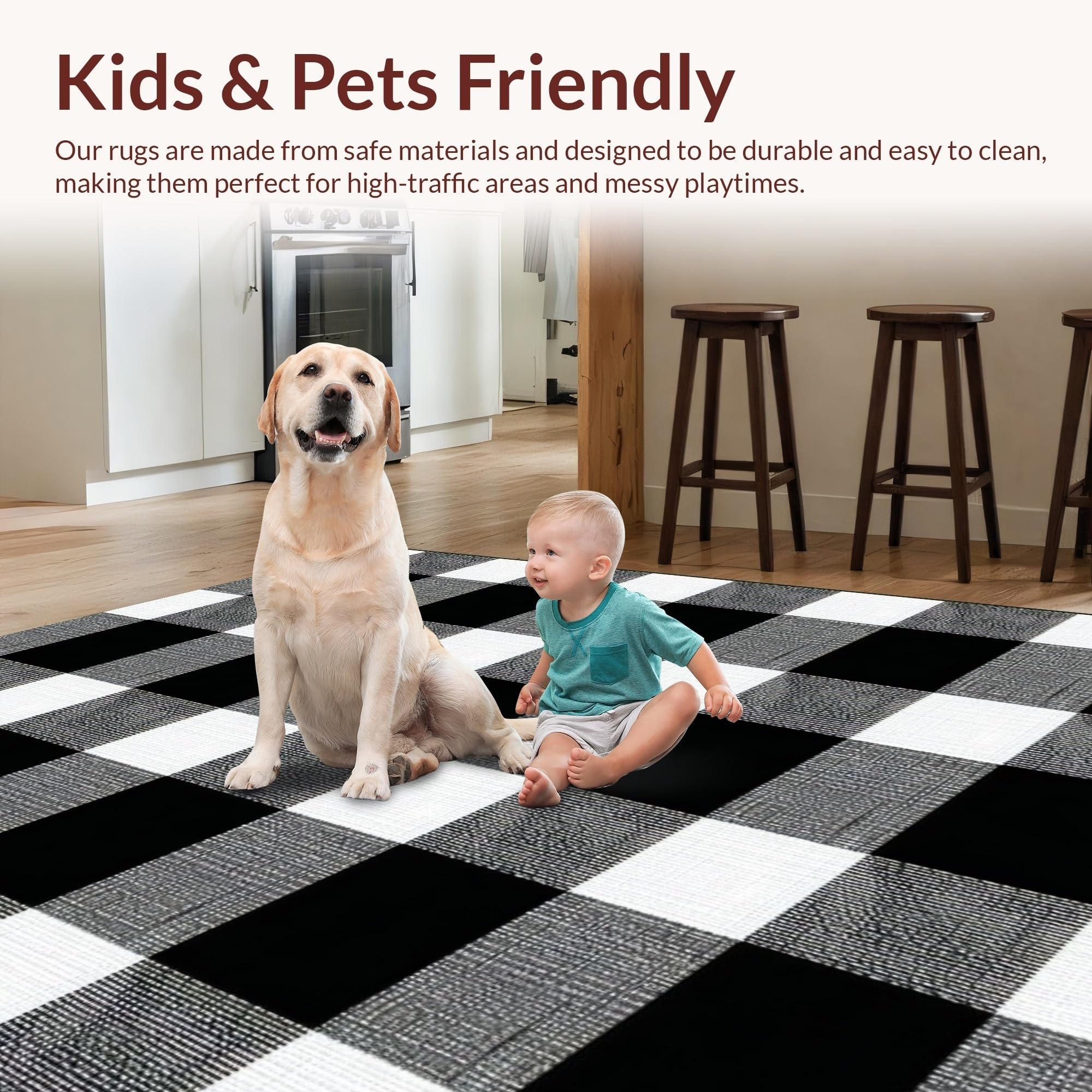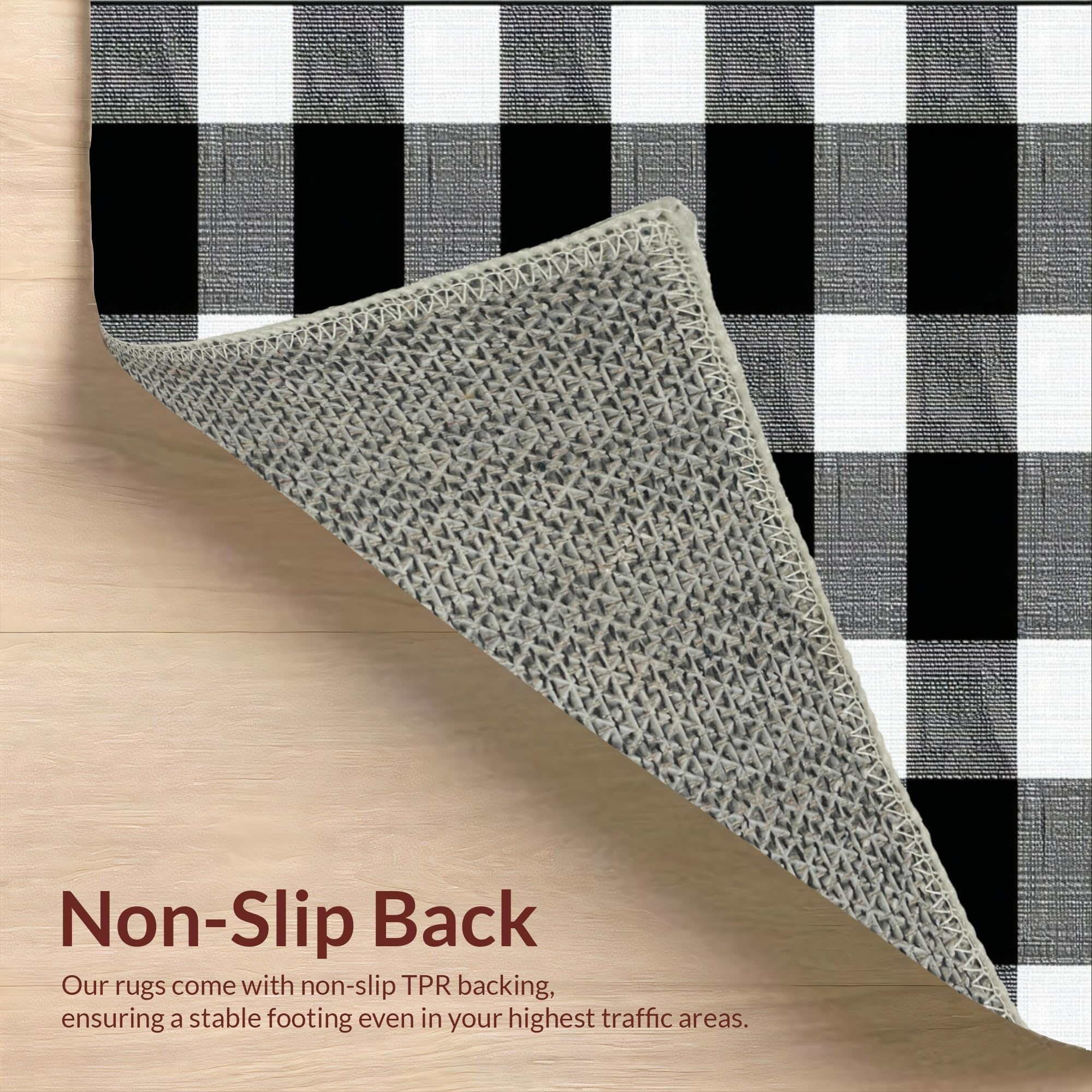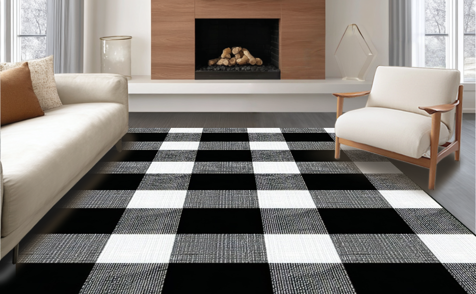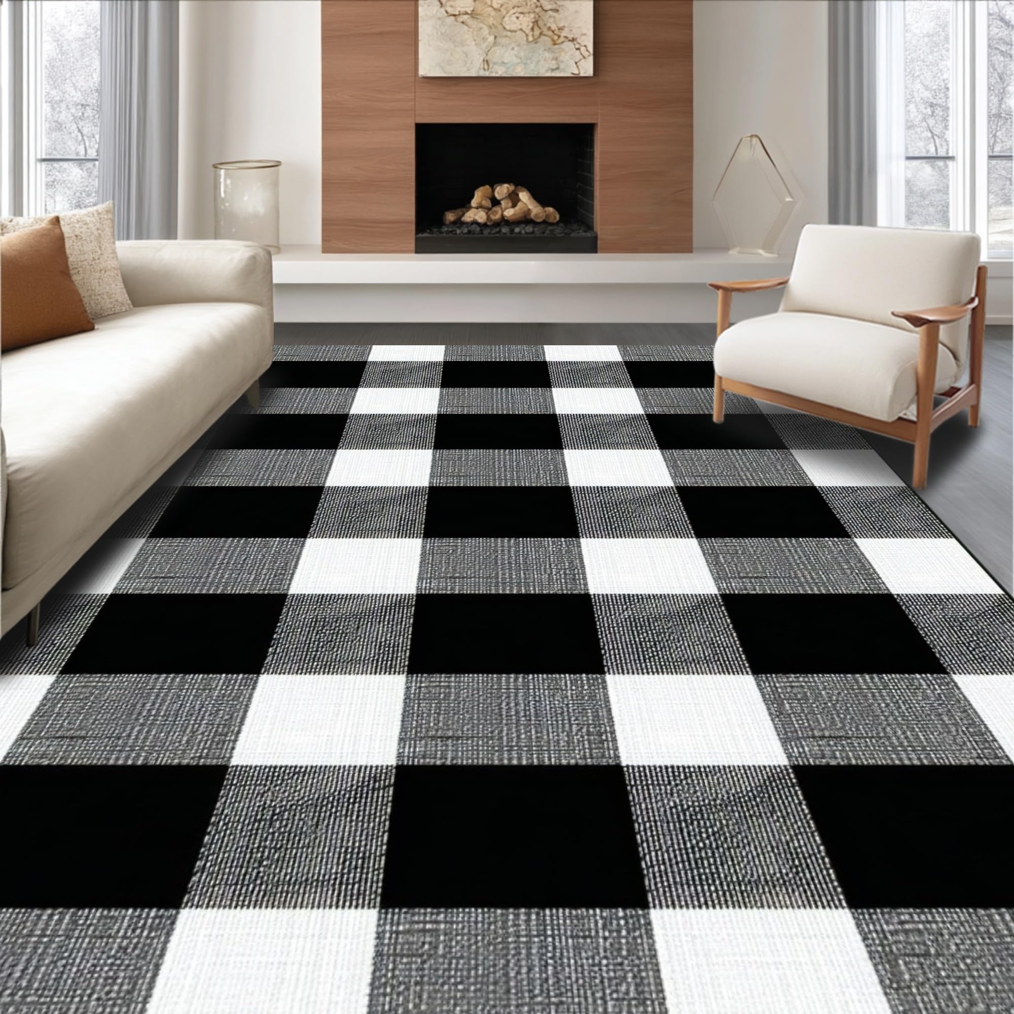 Ultra Soft Area Rug, Non Slip, Stain Resistant, Washable Area Rugs for Living Room, Bedroom, Modern Farmhouse Plaid Accent(Black) Overview: