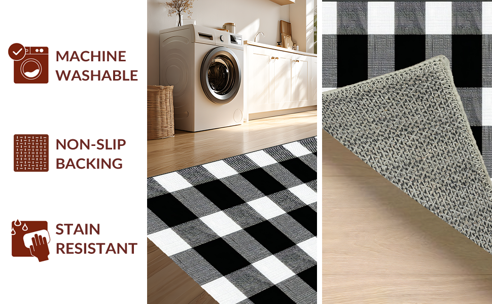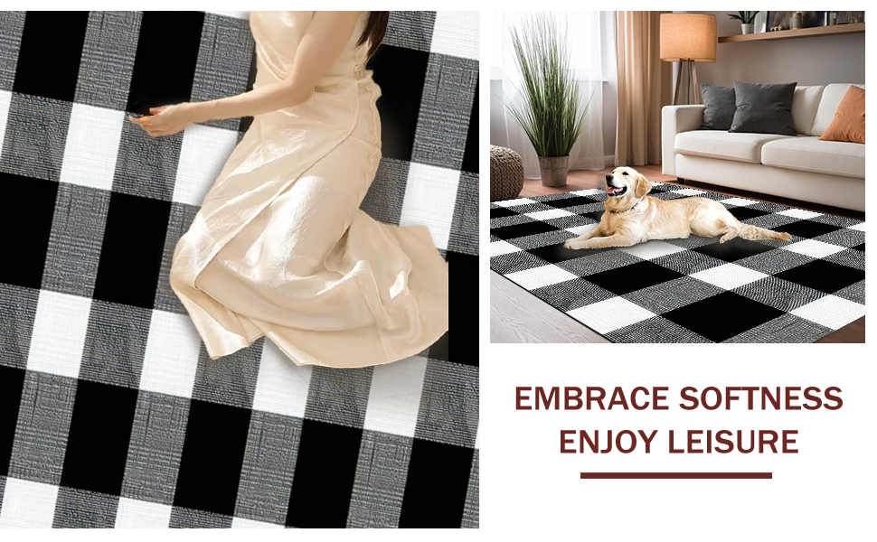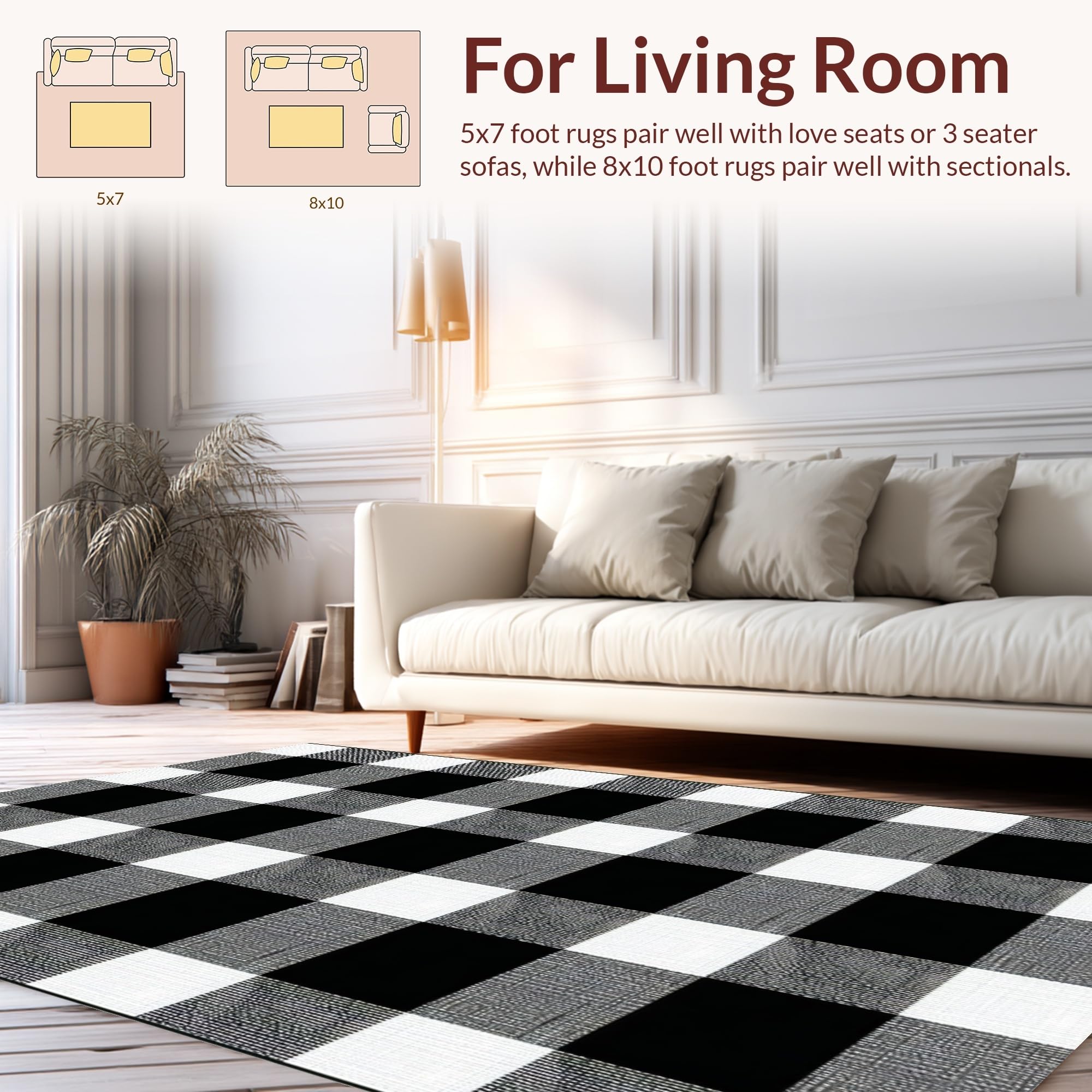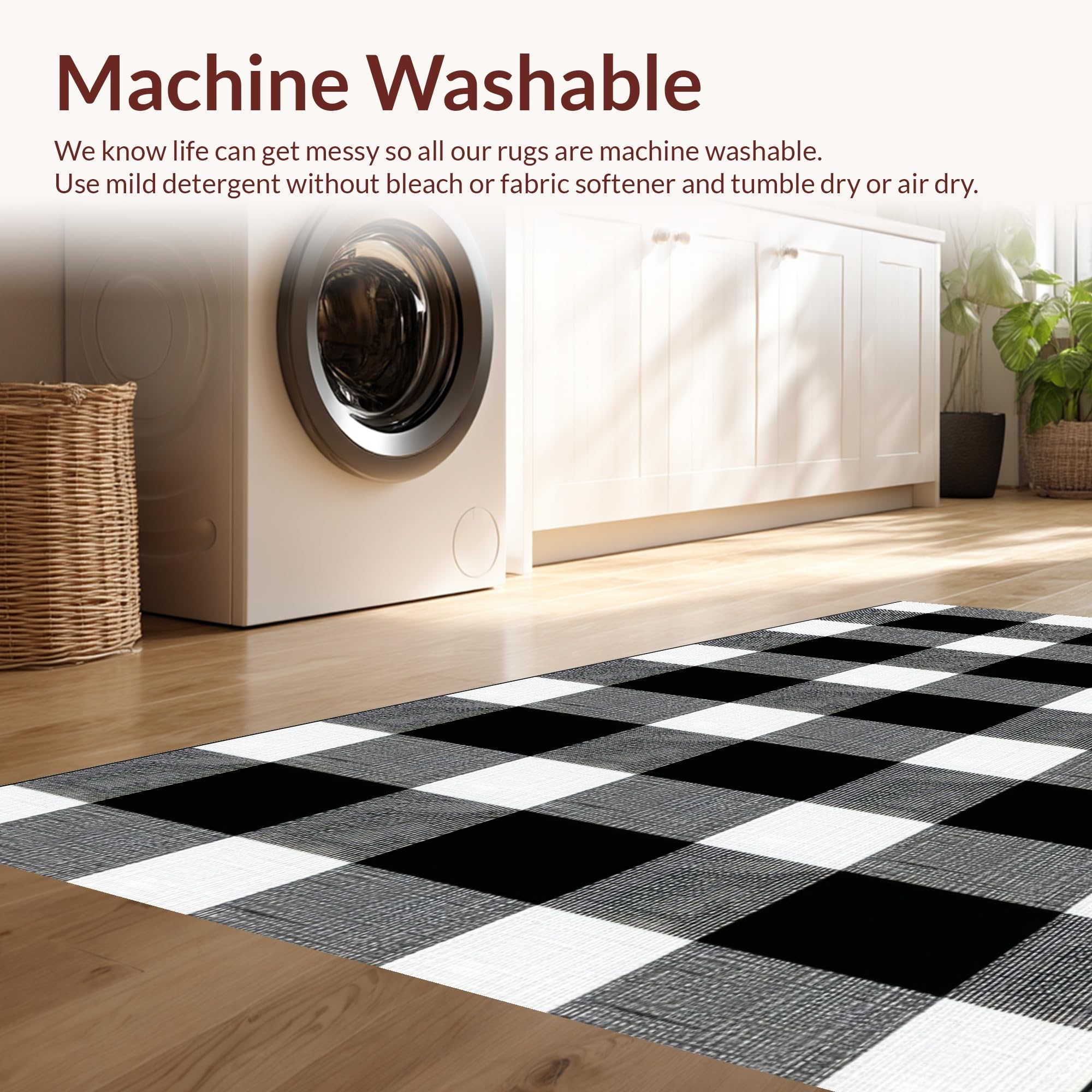 Ultra Soft Area Rug, Non Slip, Stain Resistant, Washable Area Rugs for Living Room, Bedroom, Modern Farmhouse Plaid Accent(Black) Overview: