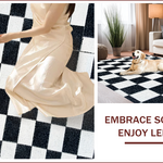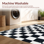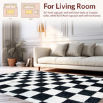 Ultra Soft Area Rug, Non Slip, Stain Resistant, Washable Area Rugs for Living Room, Bedroom, Modern Faux Wool Checkerboard(Black) Overview: