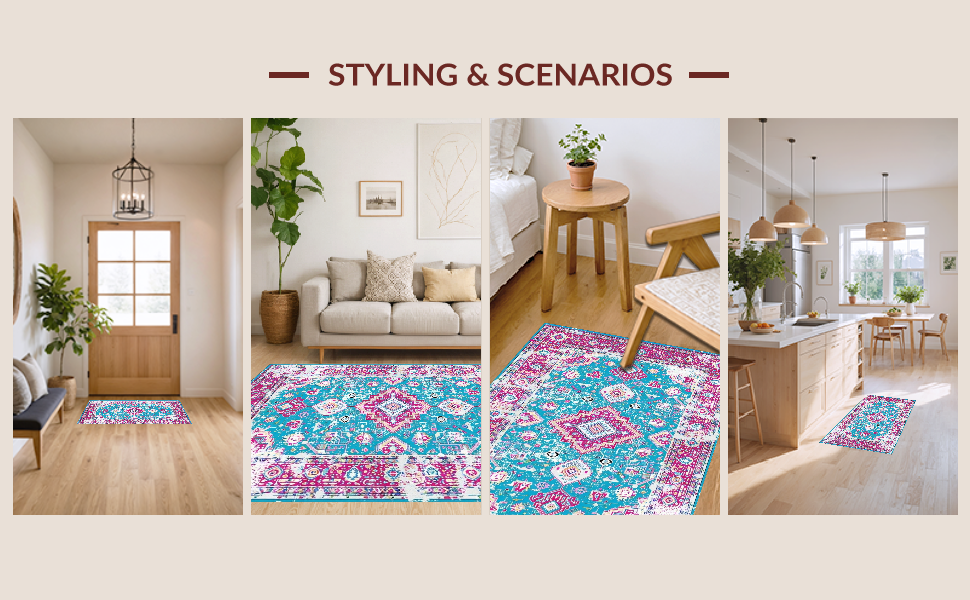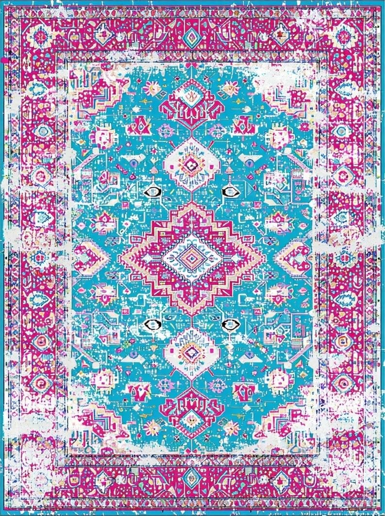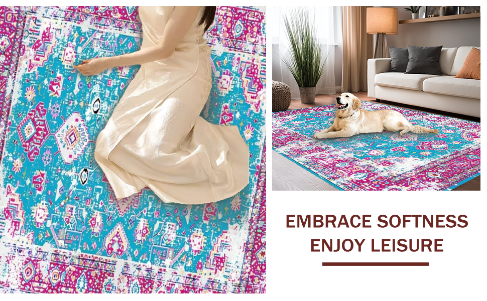 Ultra Soft Area Rug, Non Slip, Stain Resistant, Washable Area Rugs for Living Room, Bedroom, Modern Floral Distressed Aesthetic(Pink) Overview: