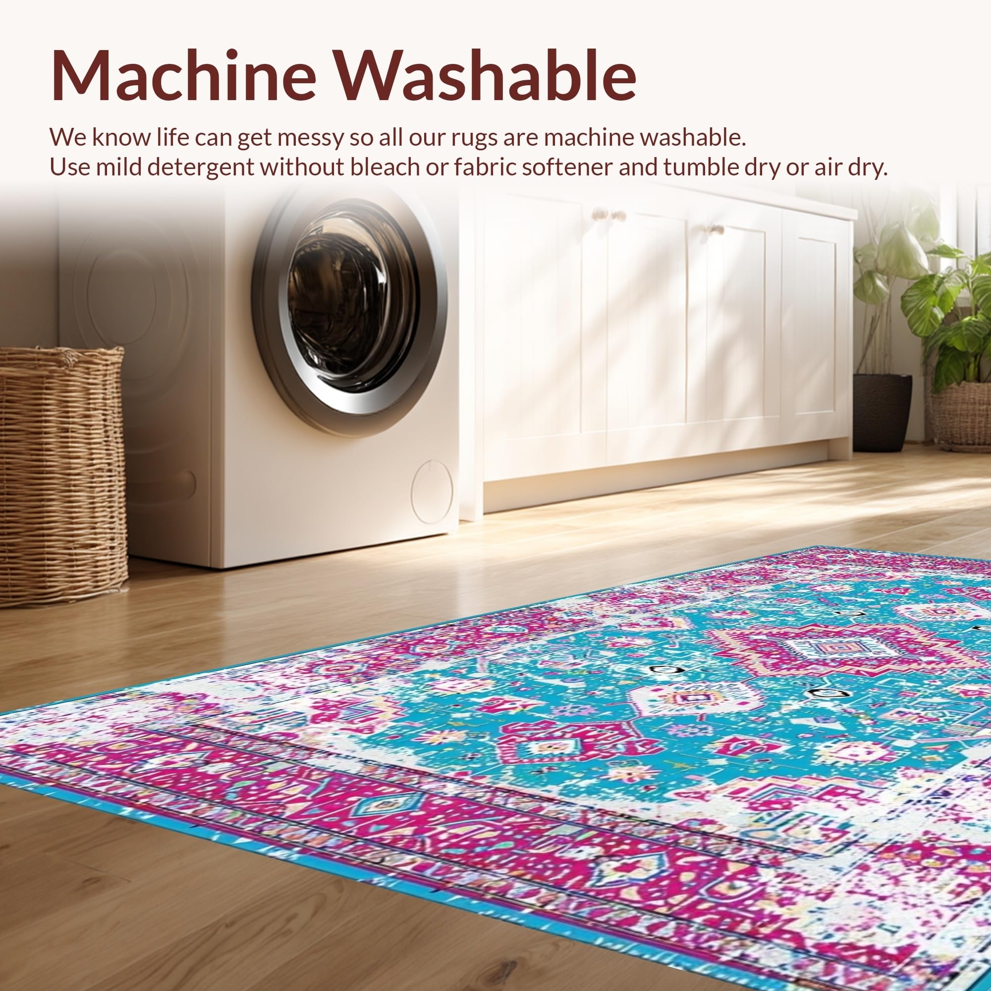- Machine Washable: Our rugs can be easily thrown in the wash machine.