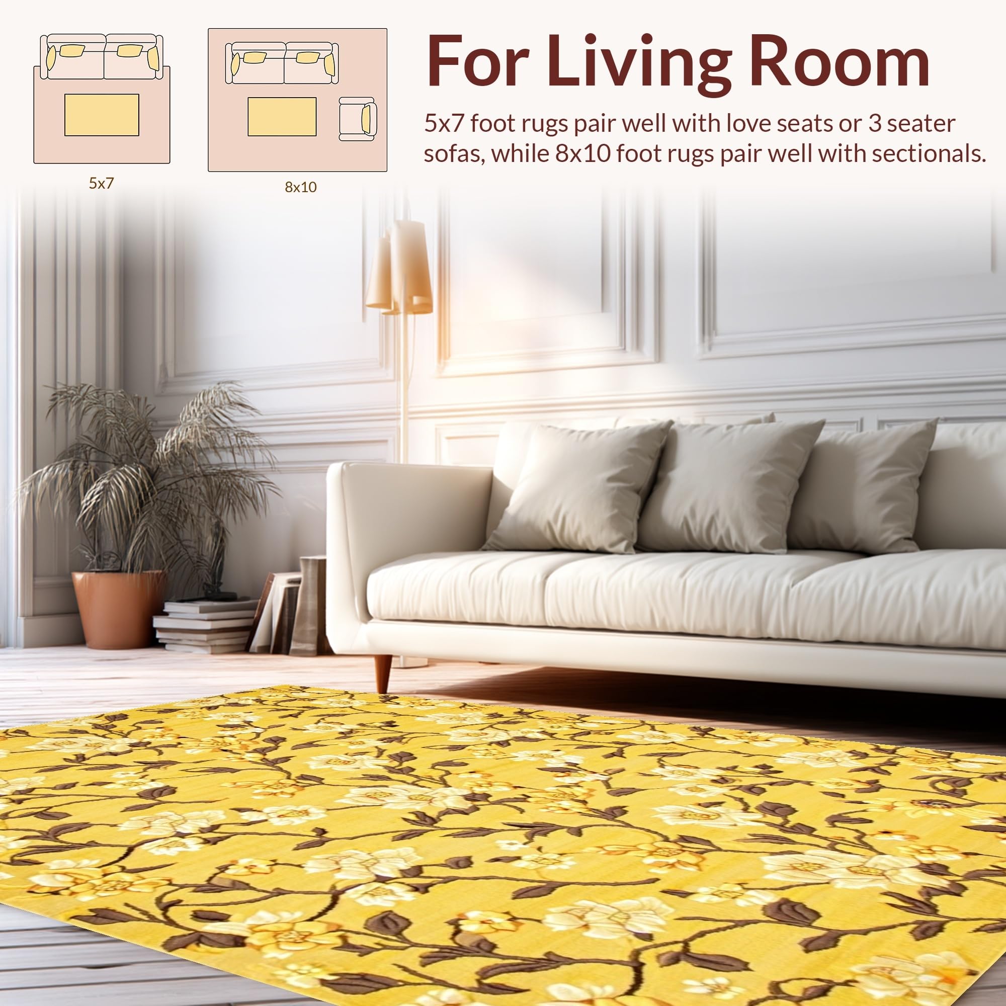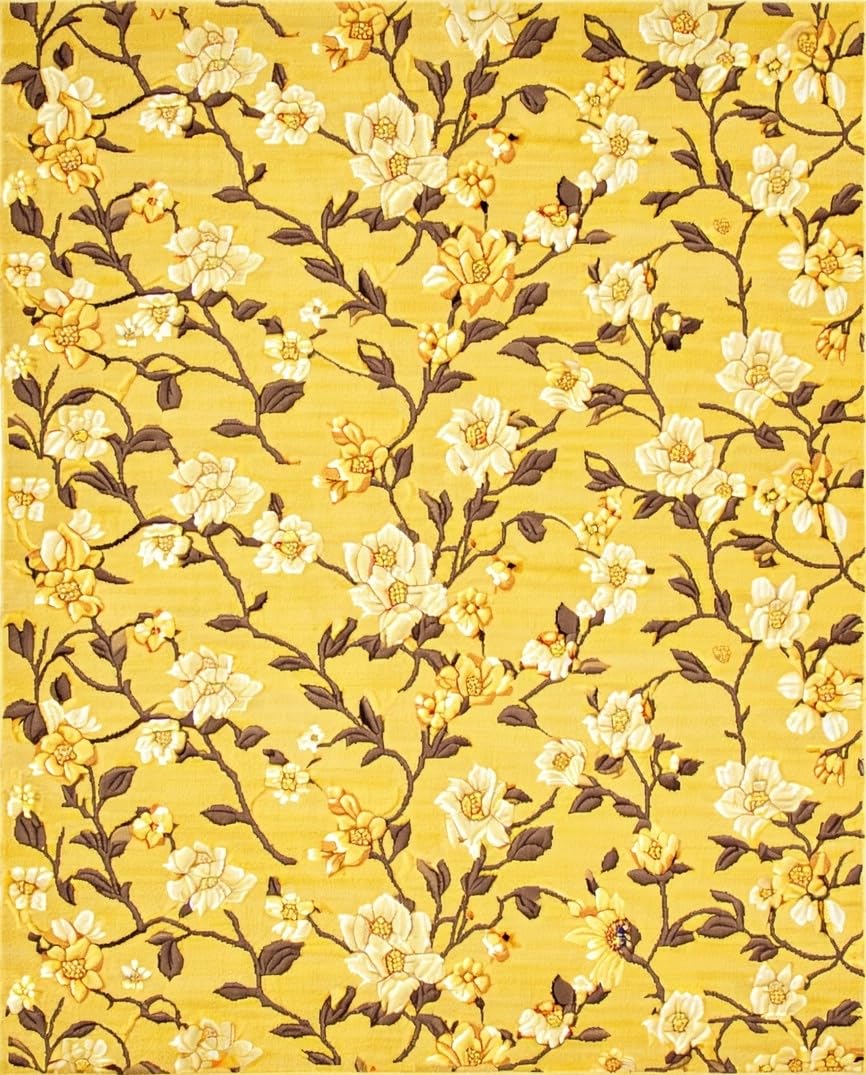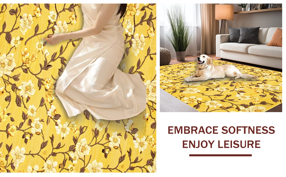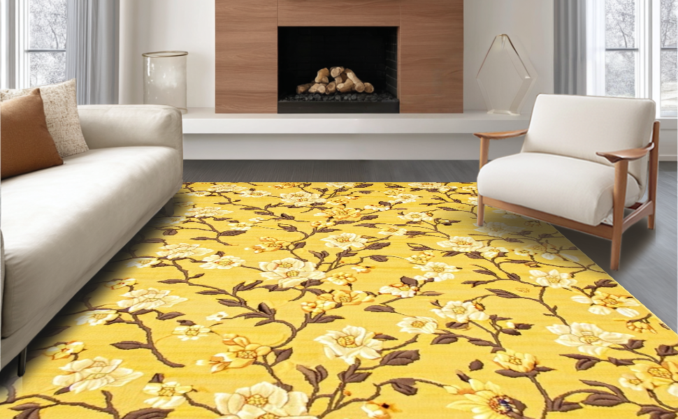 Ultra Soft Area Rug, Non Slip, Stain Resistant, Washable Area Rugs for Living Room, Bedroom, Modern Floral-Inspired Decor Theme(Yellow) Overview: