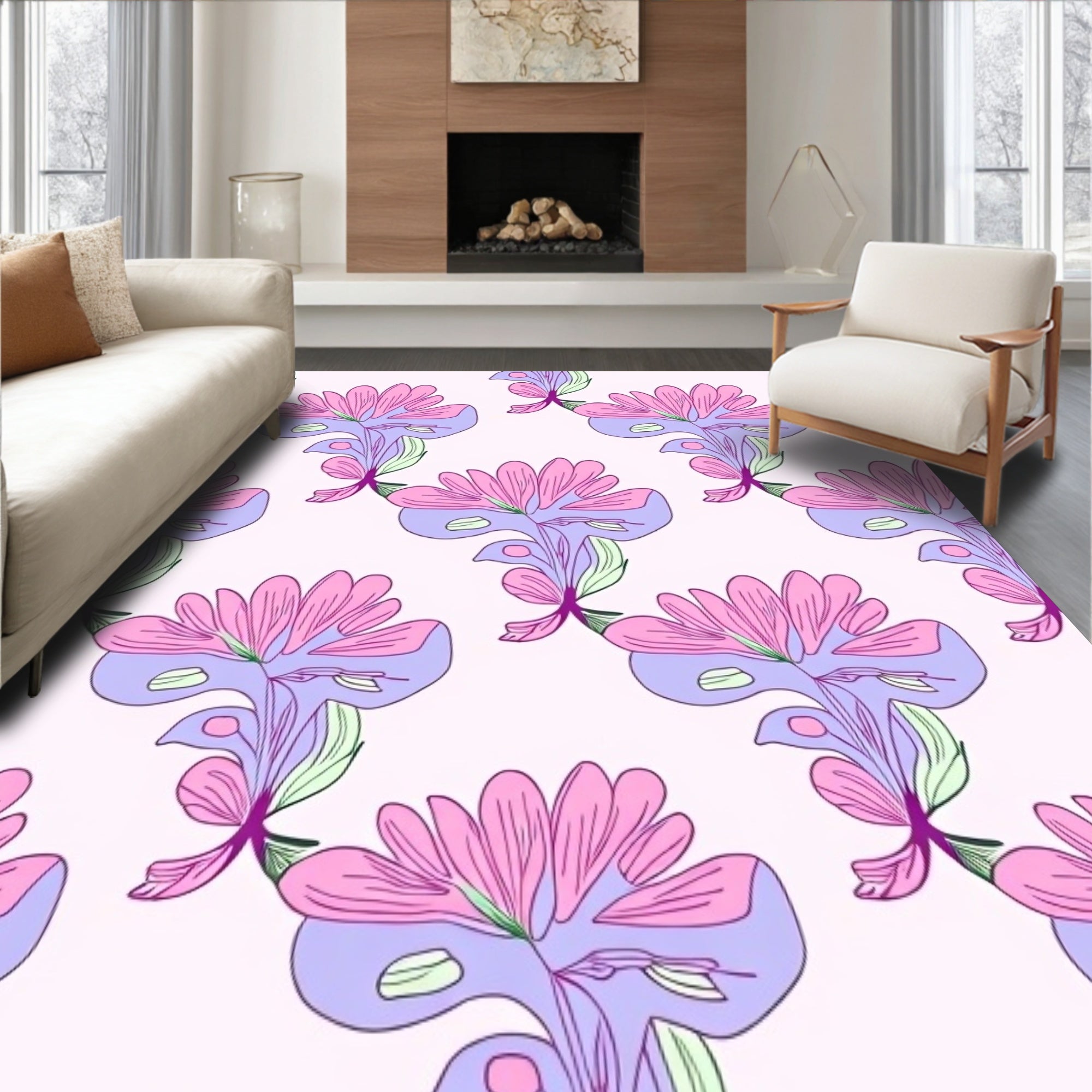 Ultra Soft Area Rug, Non Slip, Stain Resistant, Washable Area Rugs for Living Room, Bedroom, Modern Floral Interlocking Tapestry with Stylized Petal Arrangements(Pink) Overview: