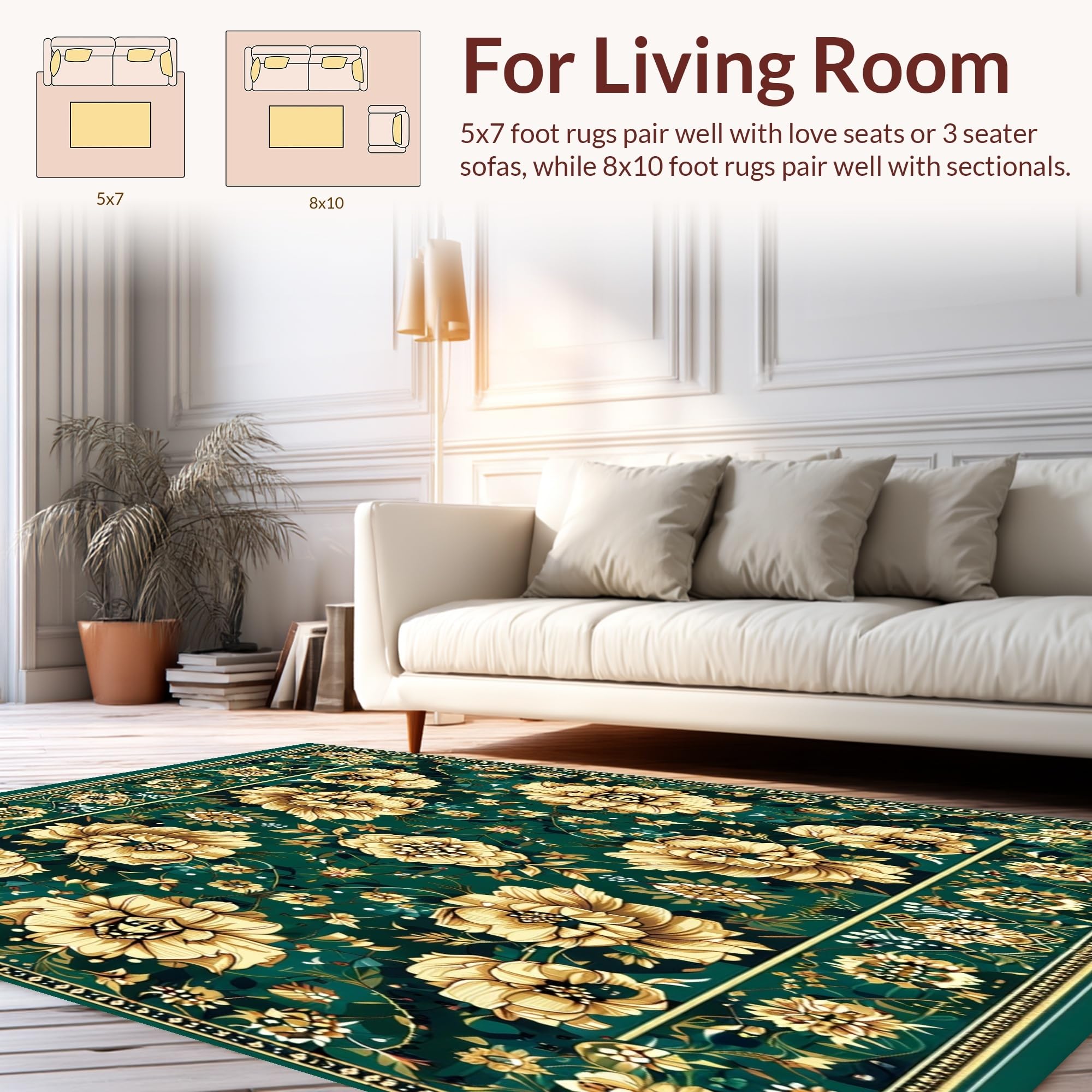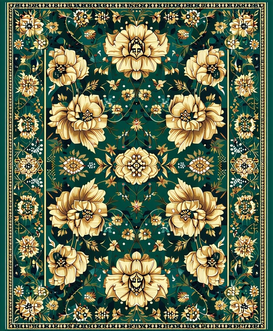 Ultra Soft Area Rug, Non Slip, Stain Resistant, Washable Area Rugs for Living Room, Bedroom, Modern Floral(Green) Overview:
