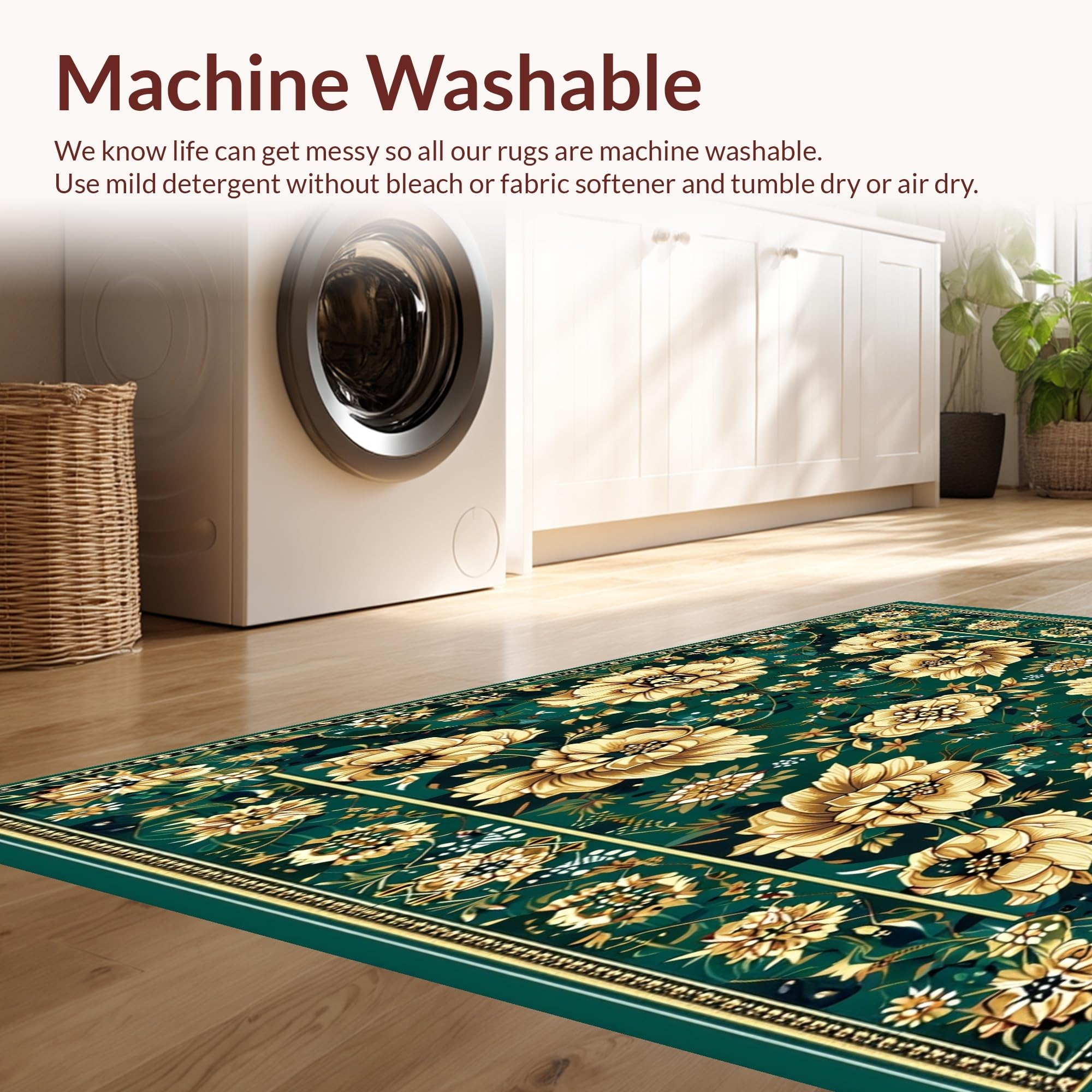 - Machine Washable: Our rugs can be easily thrown in the wash machine.