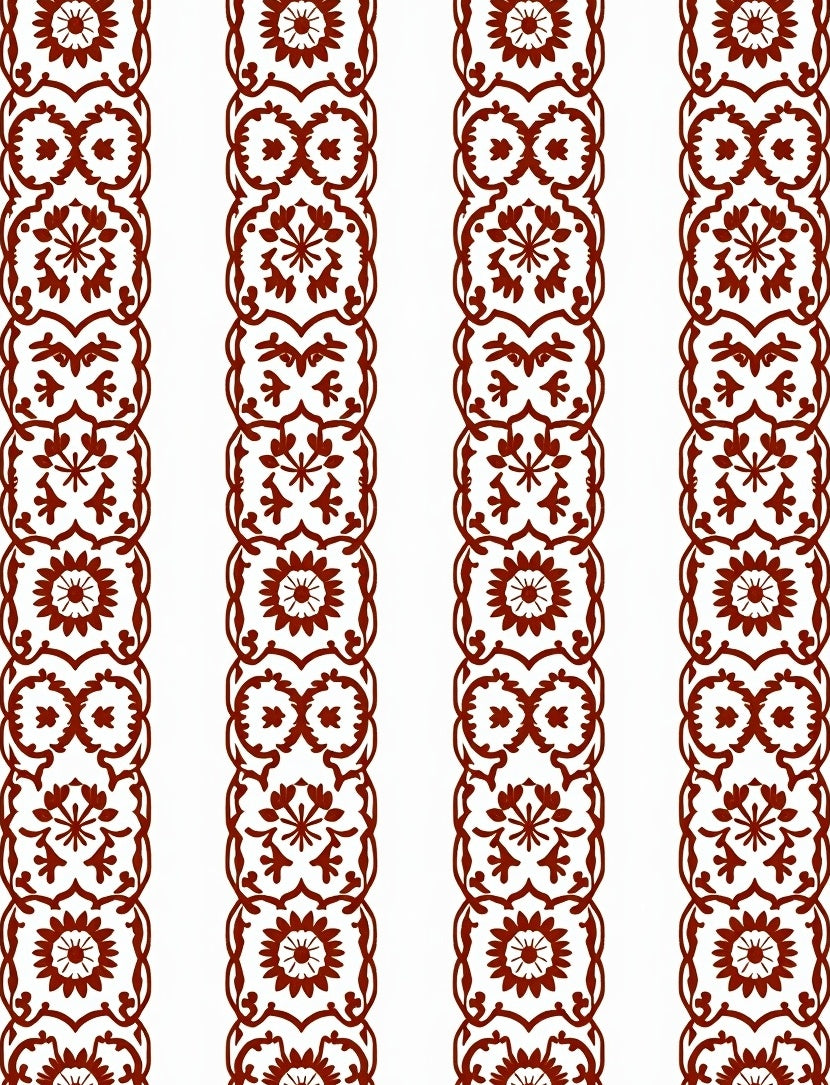 Modern Folk Art Flora Interlocking Lattice and Stylized Bloom(Brown)