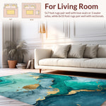 Flatwoven High Traffic Area Rug, Modern Geometric Gold Accent, Non Slip, Stain Resistant, Washable Area Rugs for Living Room, Bedroom (Green) Overview: