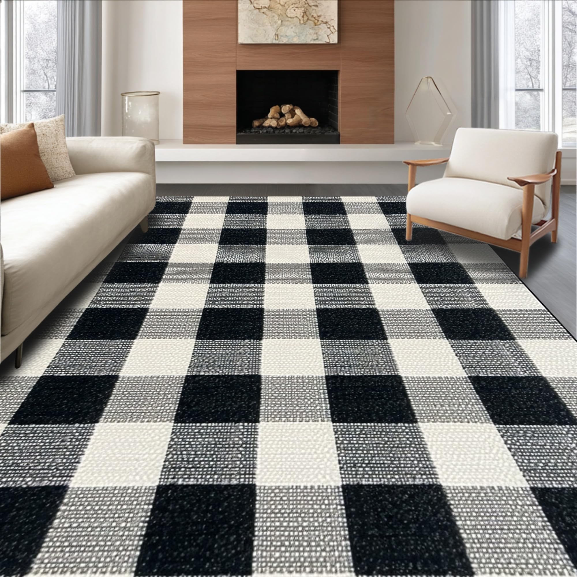 Ultra Soft Area Rug, Non Slip, Stain Resistant, Washable Area Rugs for Living Room, Bedroom, Modern Geometric Outdoor Patio Non-Slip Carpet(Black) Overview: