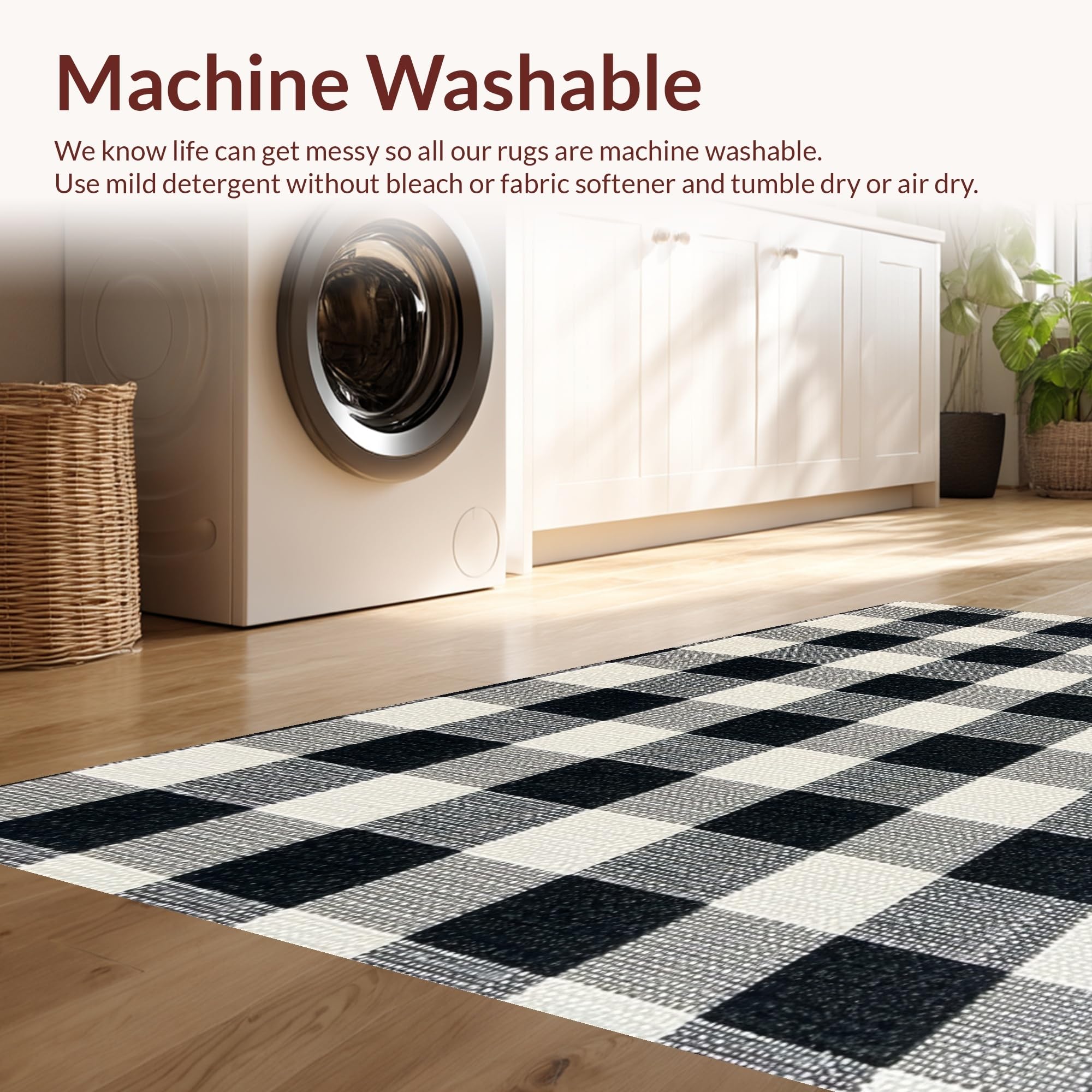 - Machine Washable: Our rugs can be easily thrown in the wash machine.