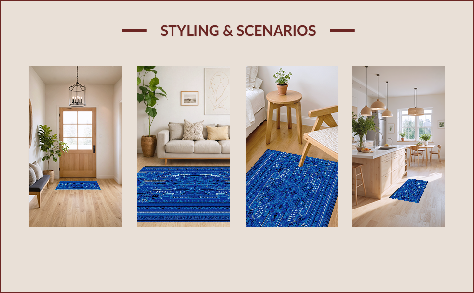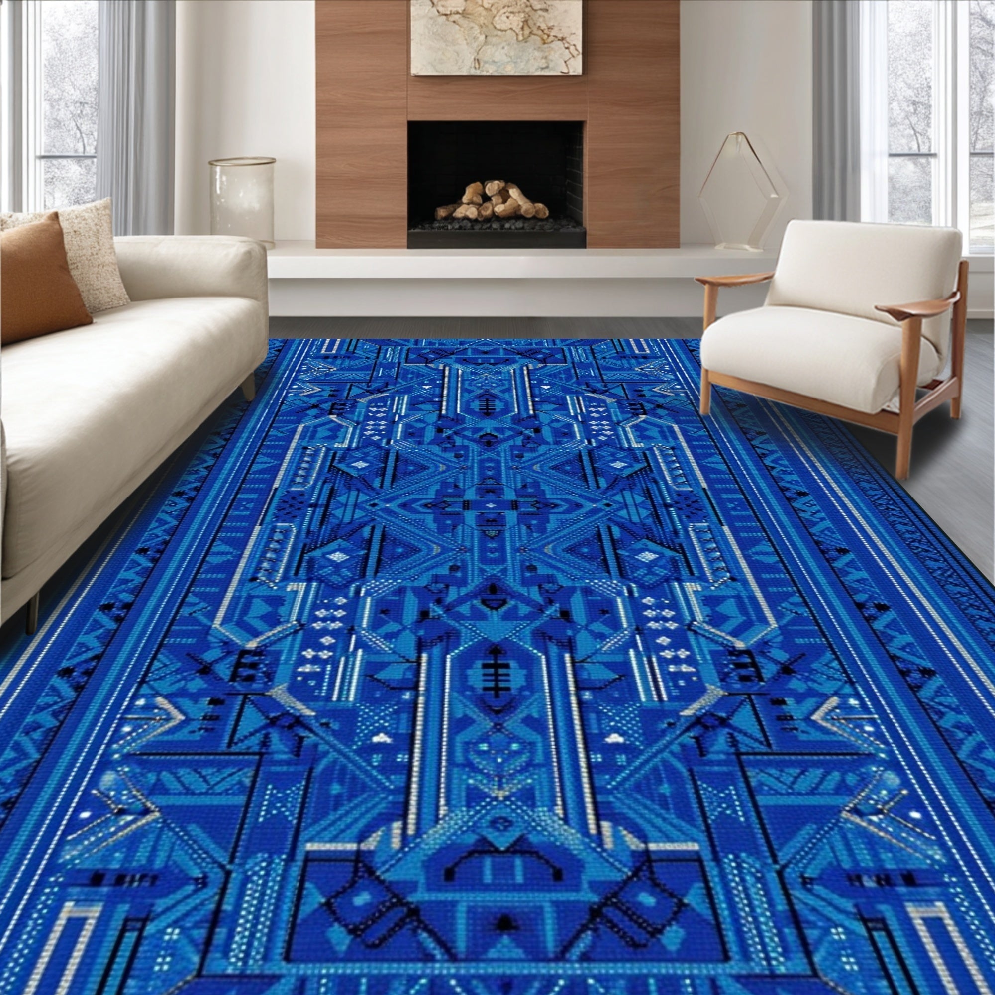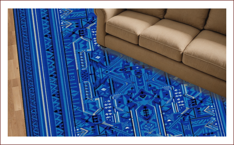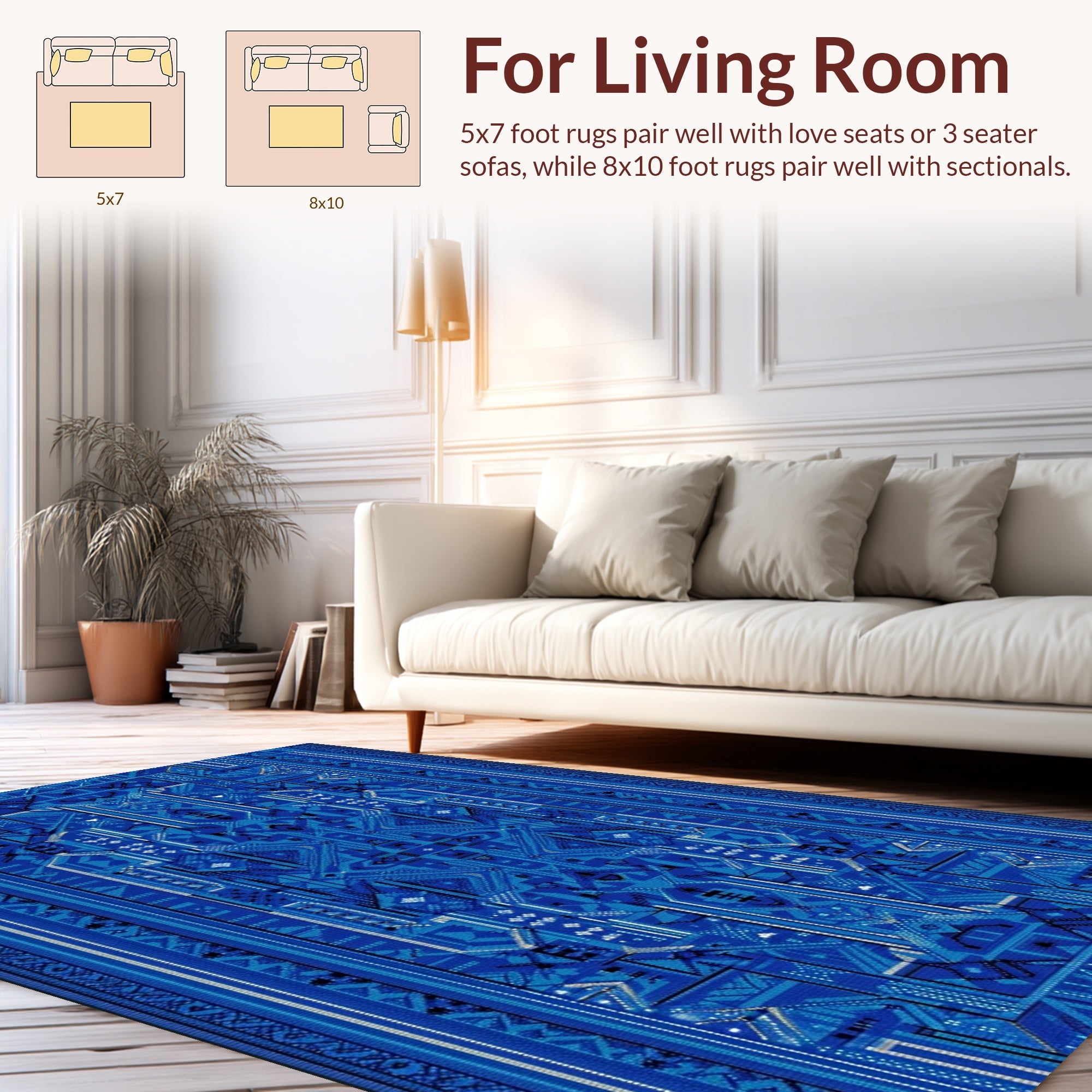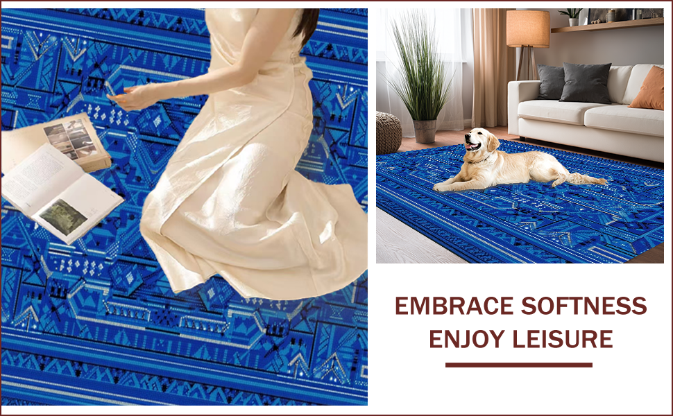 Ultra Soft Area Rug, Non Slip, Stain Resistant, Washable Area Rugs for Living Room, Bedroom, Modern Geometric Trellis(Blue) Overview: