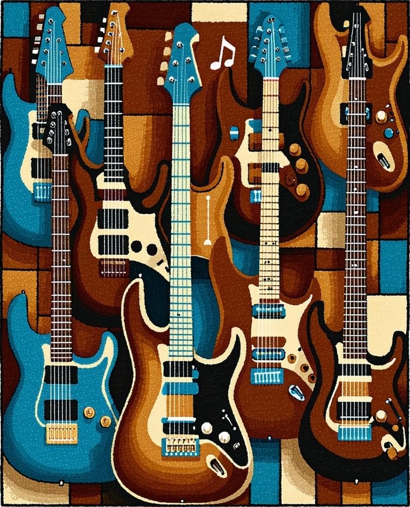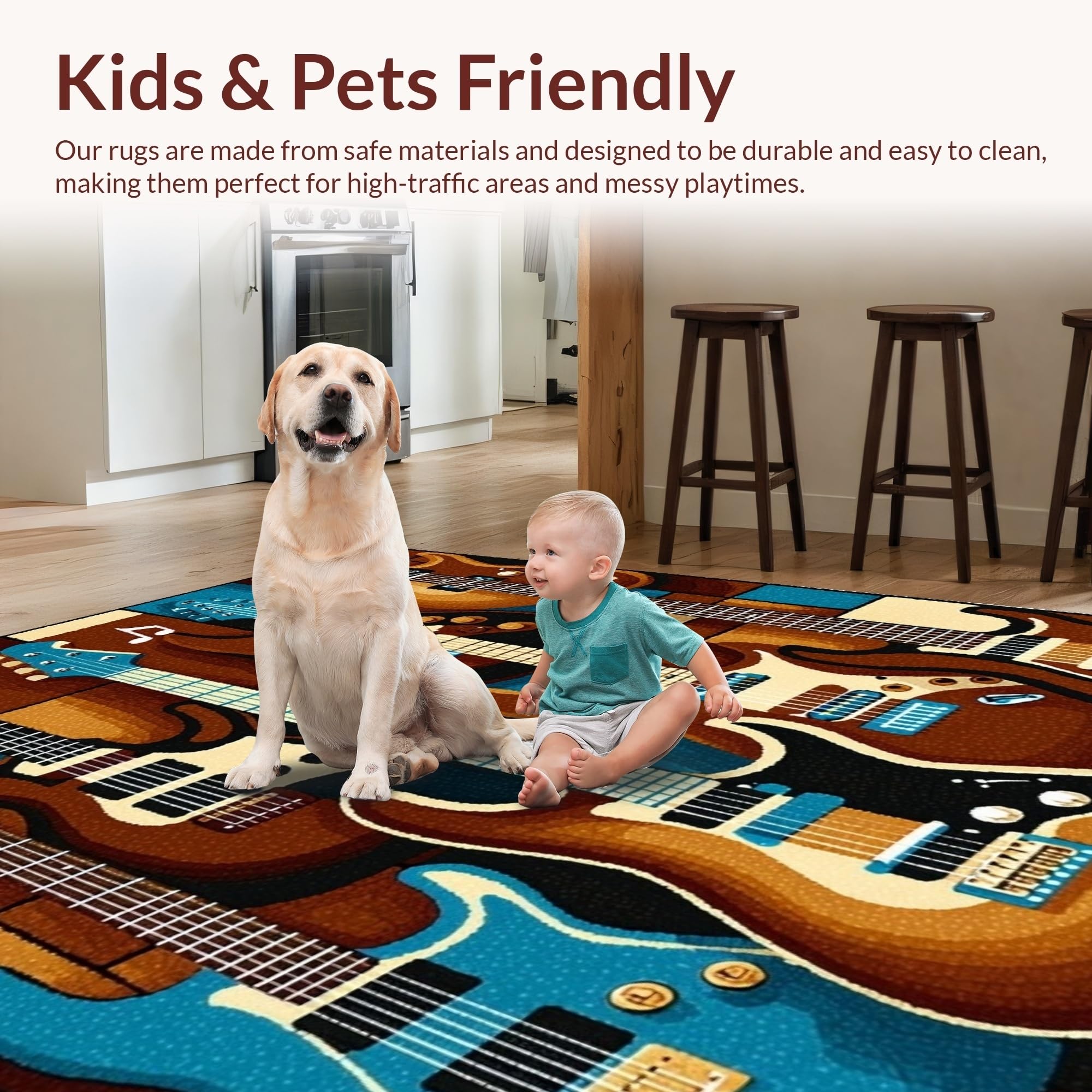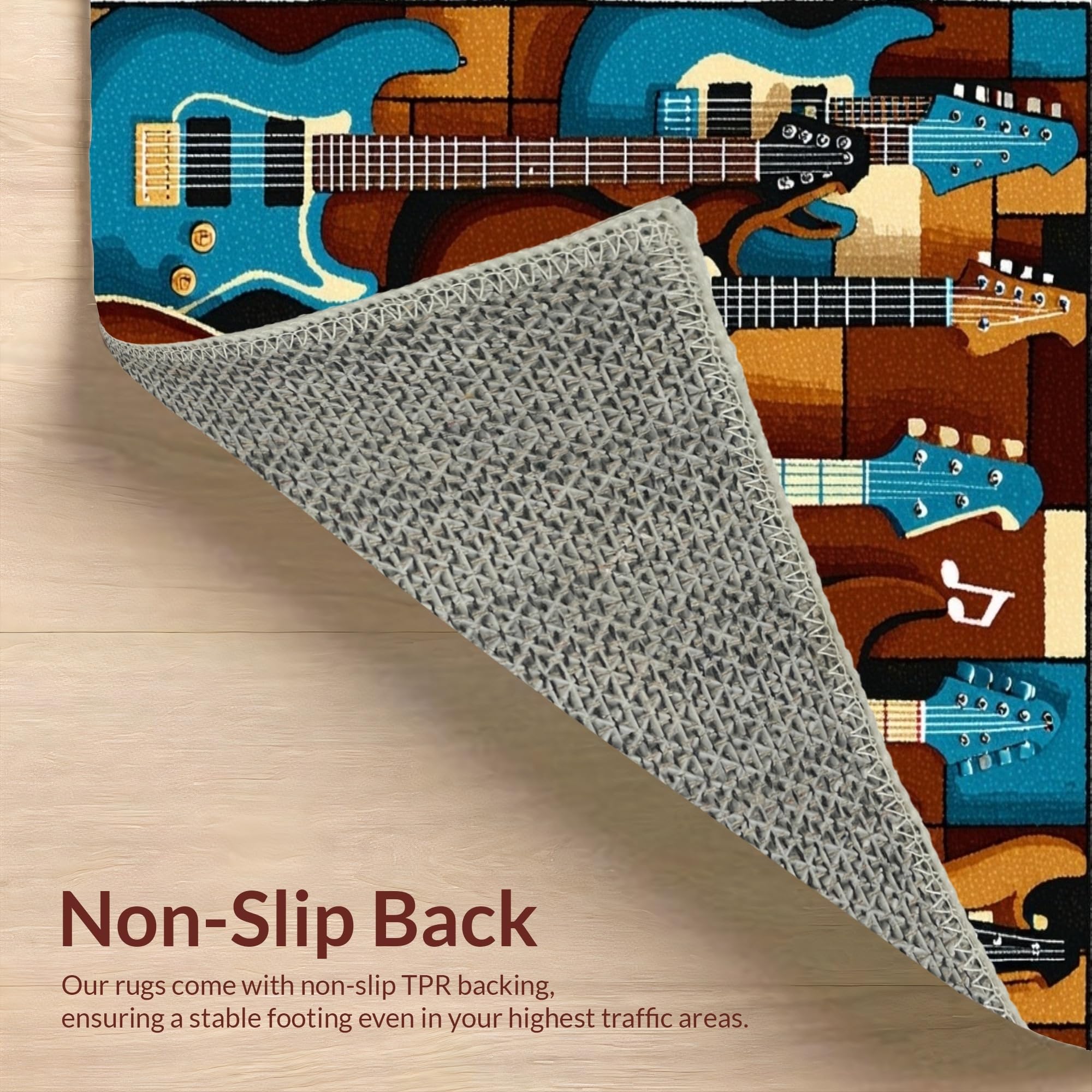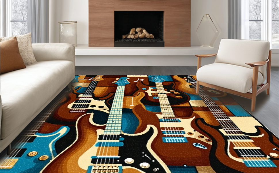 Ultra Soft Area Rug, Non Slip, Stain Resistant, Washable Area Rugs for Living Room, Bedroom, Modern Graphic Bass Guitar Imagery(Brown) Overview: