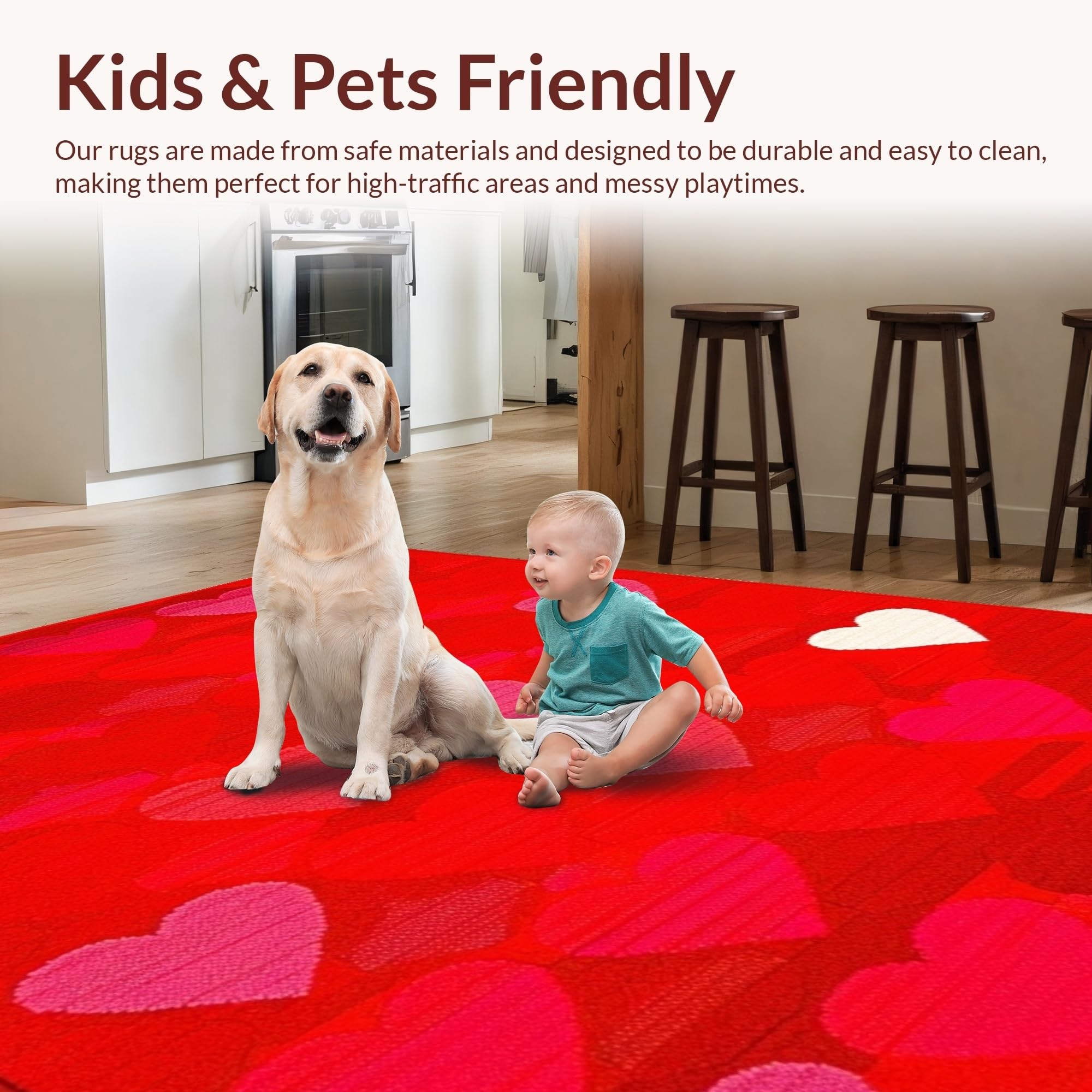 Ultra Soft Area Rug, Non Slip, Stain Resistant, Washable Area Rugs for Living Room, Bedroom, Modern Groovy Graphic Element(Red) Overview:
