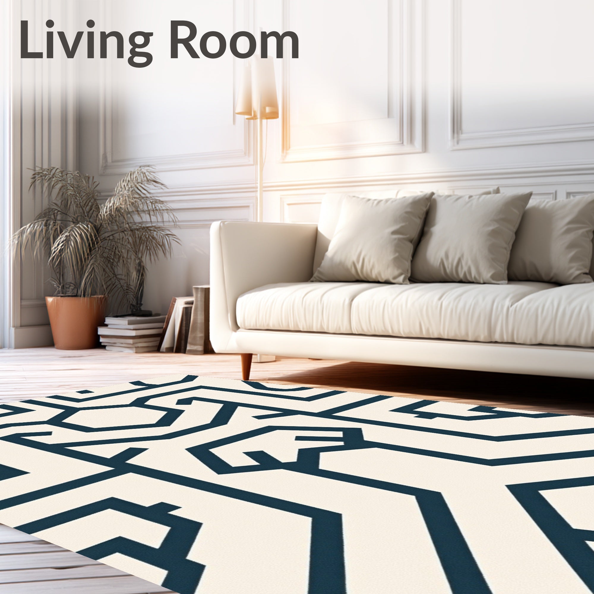 Ultra Soft Area Rug, Non Slip, Stain Resistant, Washable Area Rugs for Living Room, Bedroom, Modern Hexagonal Maze Design with Contemporary Flair(Black) Overview: