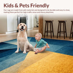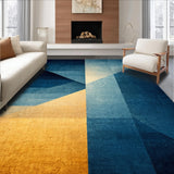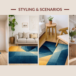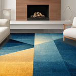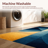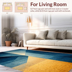 Ultra Soft Area Rug, Non Slip, Stain Resistant, Washable Area Rugs for Living Room, Bedroom, Modern Horizon Rug with Dynamic Blue Gold Spectrum and Linear Geometric Motifs(Blue) Overview:
