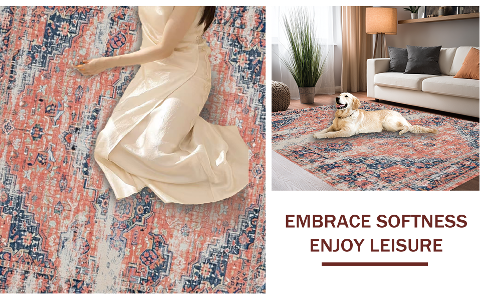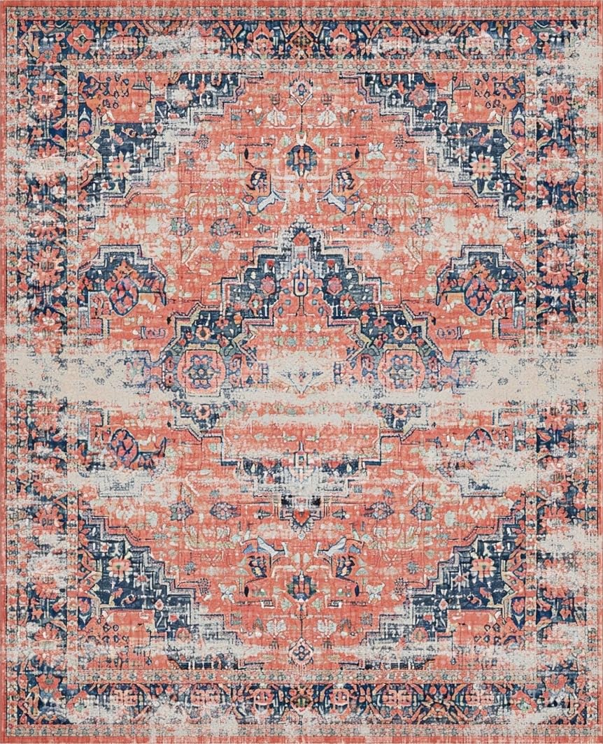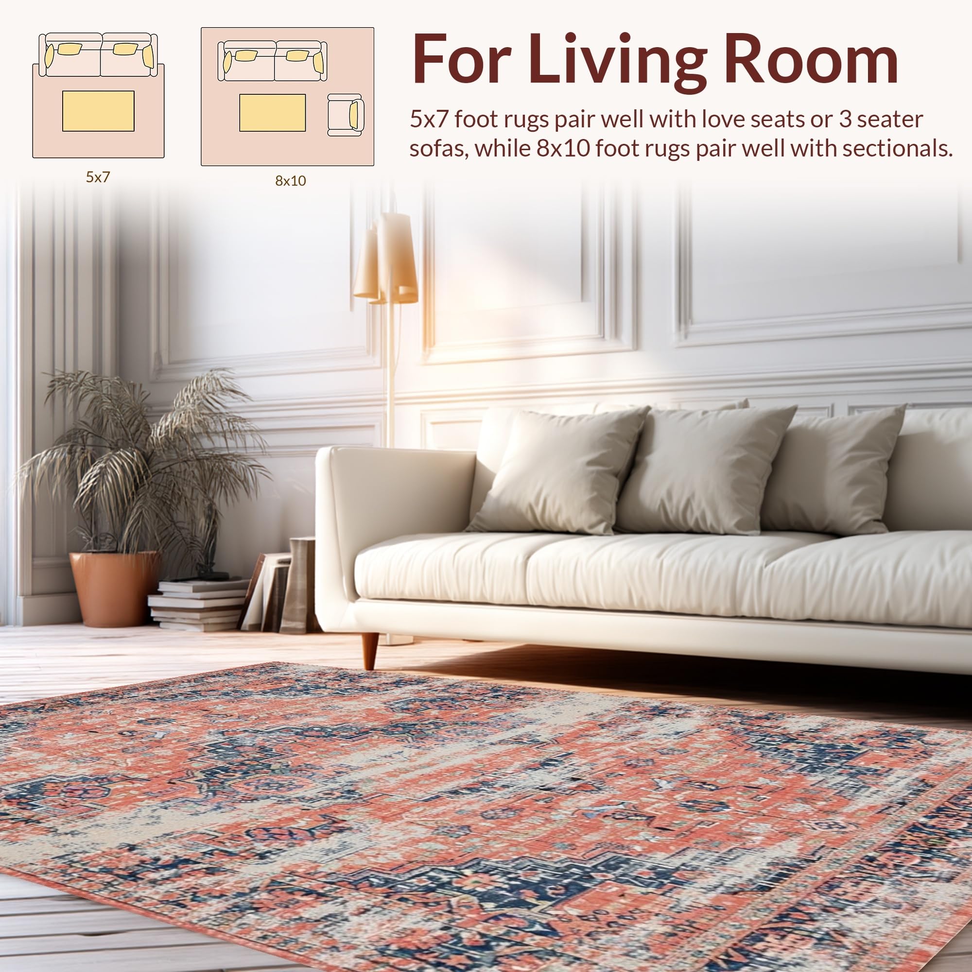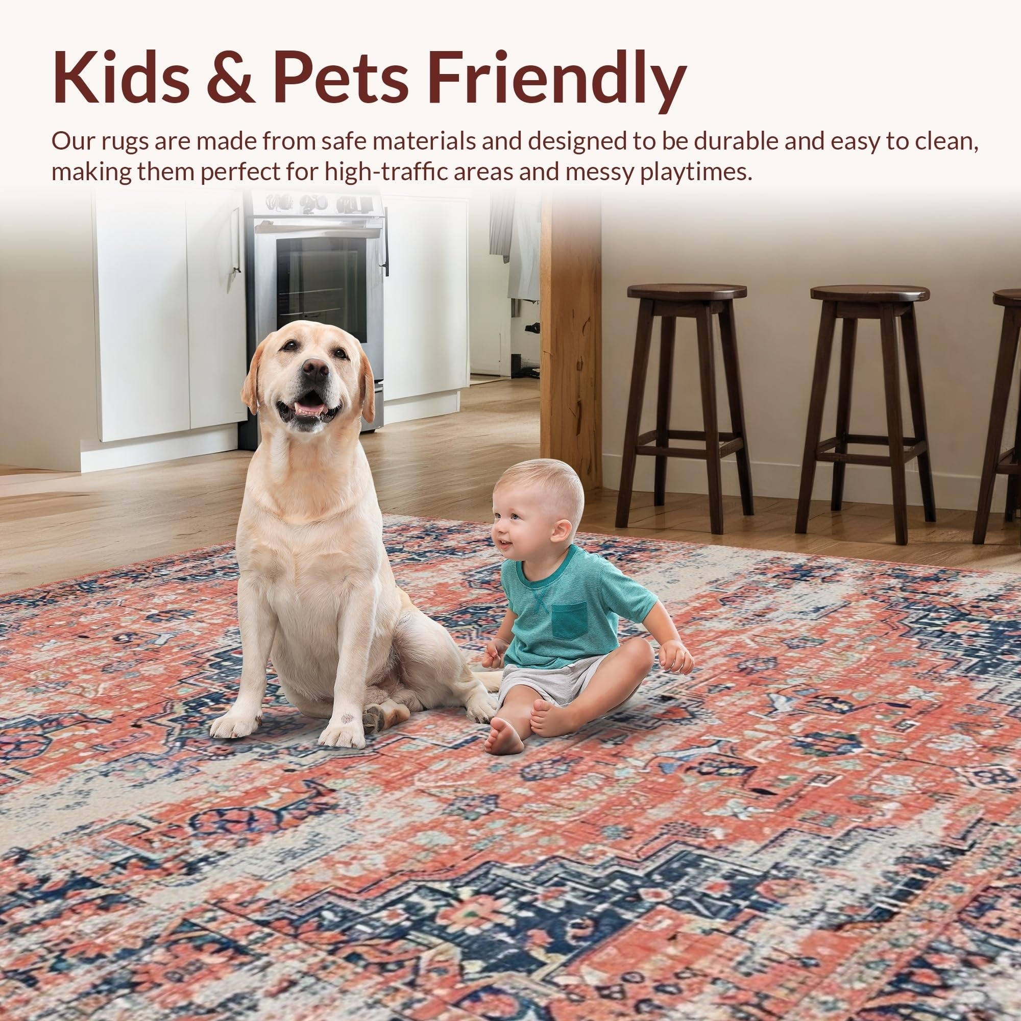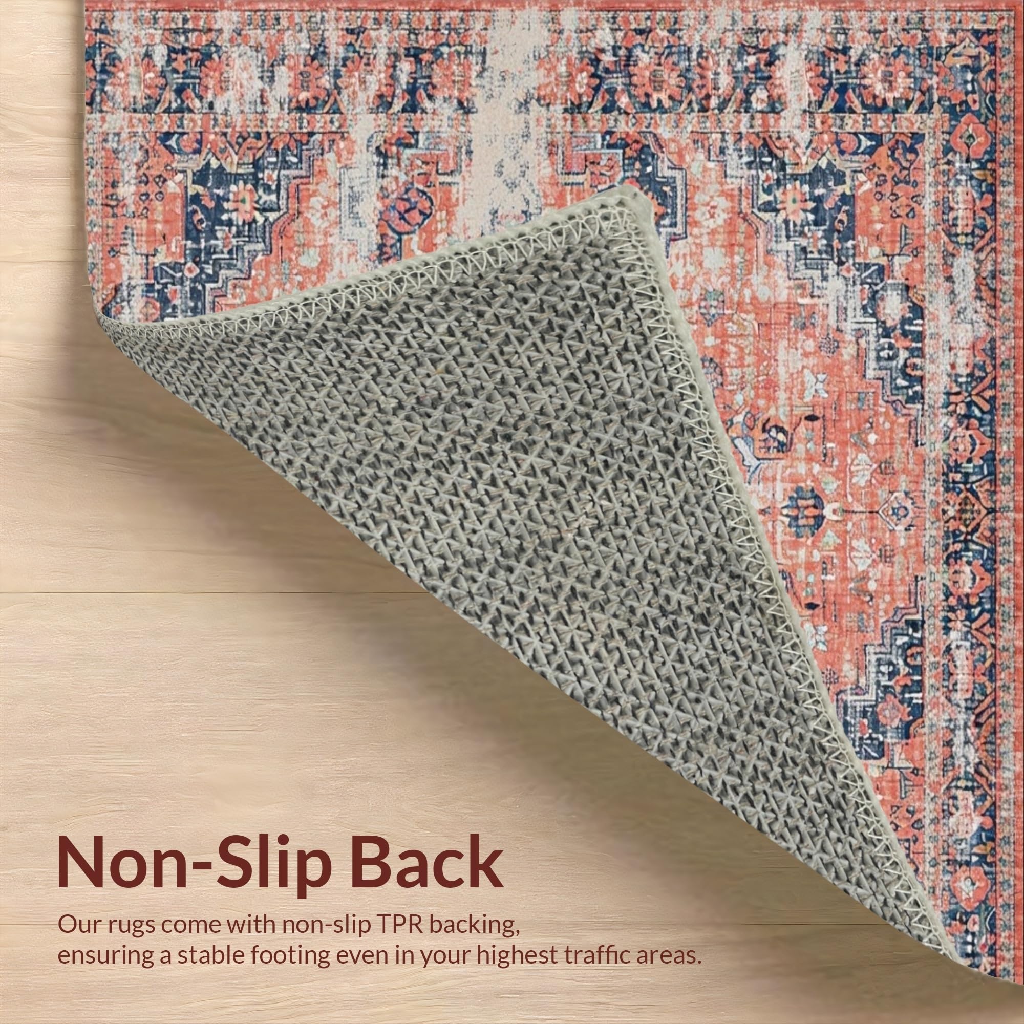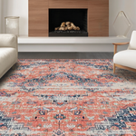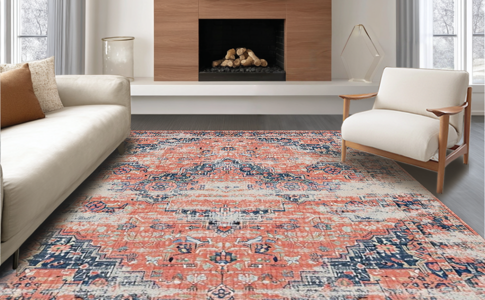 Ultra Soft Area Rug, Non Slip, Stain Resistant, Washable Area Rugs for Living Room, Bedroom, Modern Ink Hued Medallion Style(Red) Overview:
