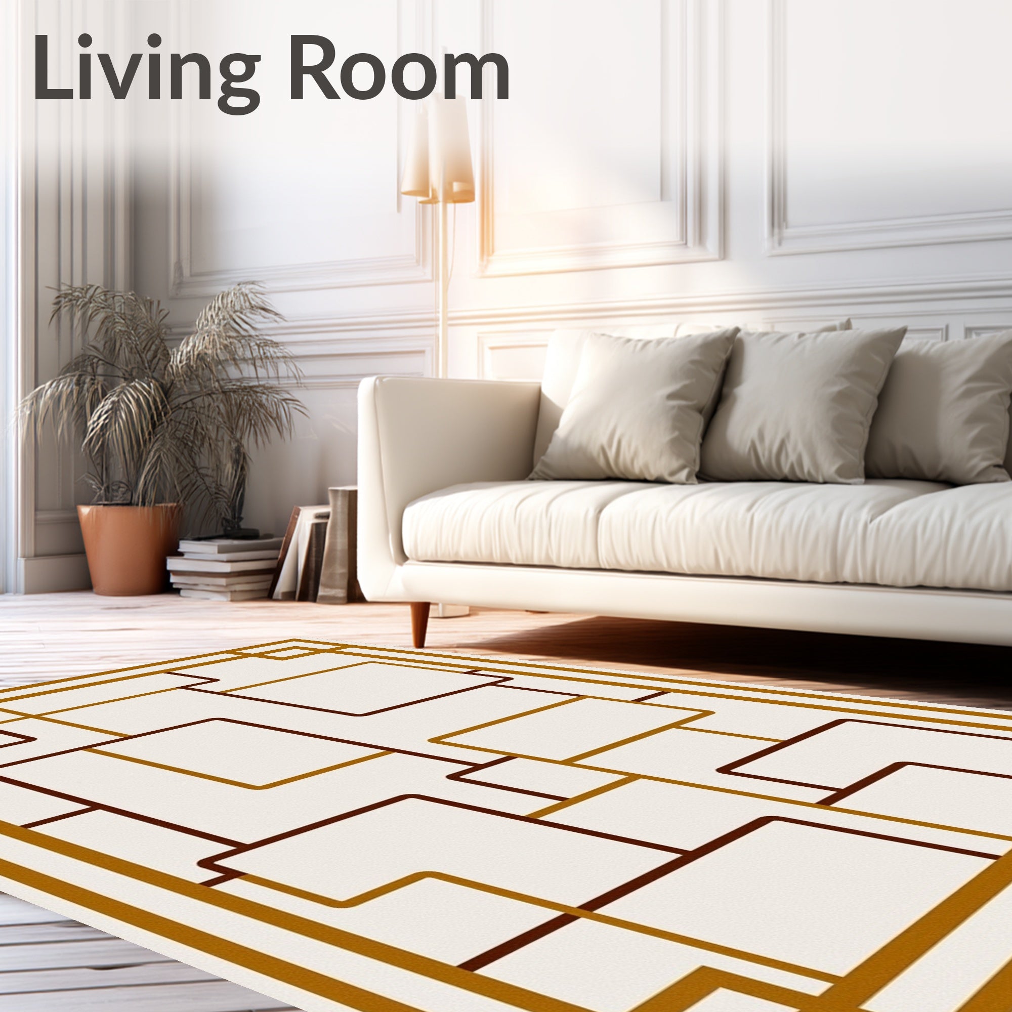 Ultra Soft Area Rug, Non Slip, Stain Resistant, Washable Area Rugs for Living Room, Bedroom, Modern Interlocking Maze with Elegant Framing(Gold) Overview: