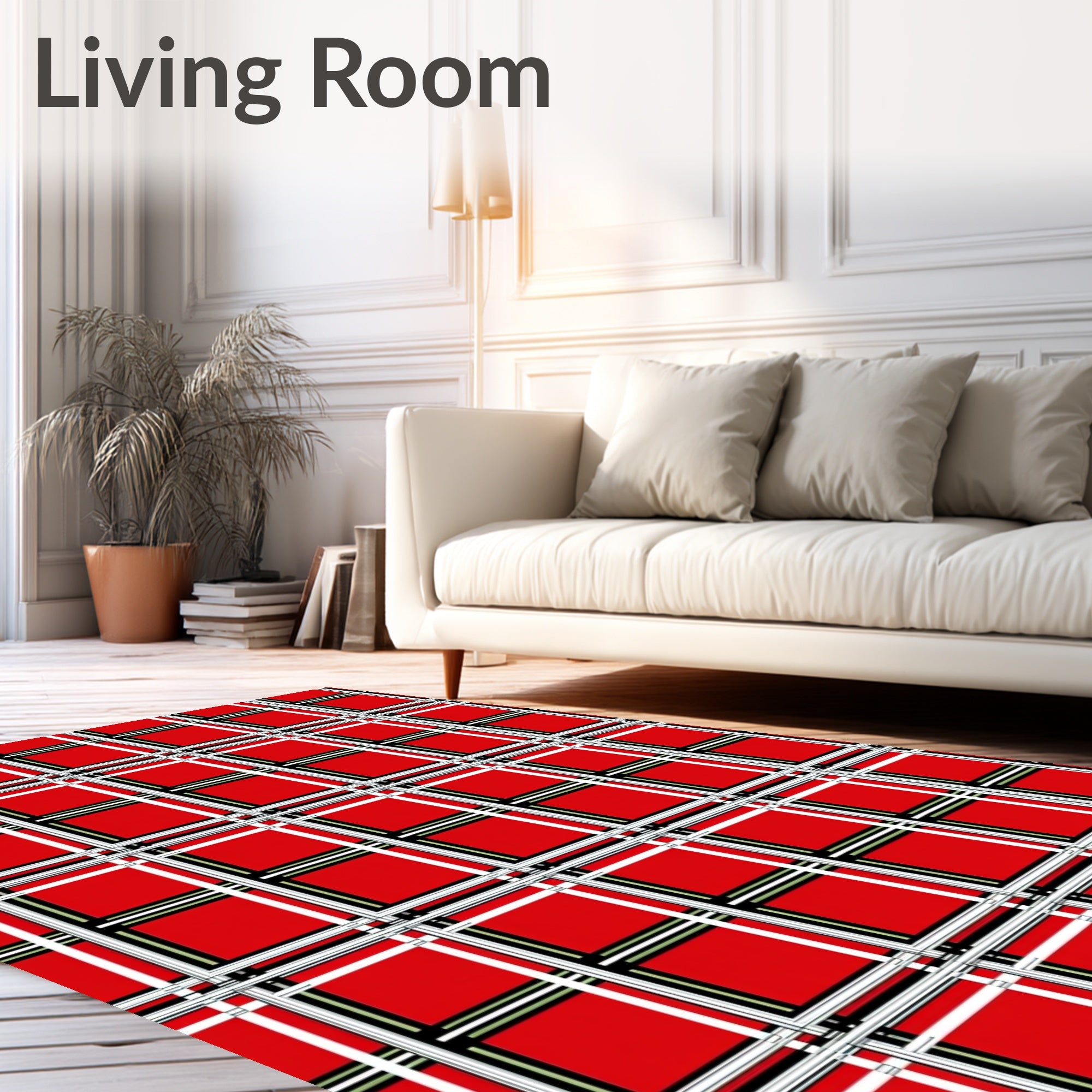 Ultra Soft Area Rug, Non Slip, Stain Resistant, Washable Area Rugs for Living Room, Bedroom, Modern Interlocking Plaid Grid with Subtle Houndstooth Contrast(Red) Overview: