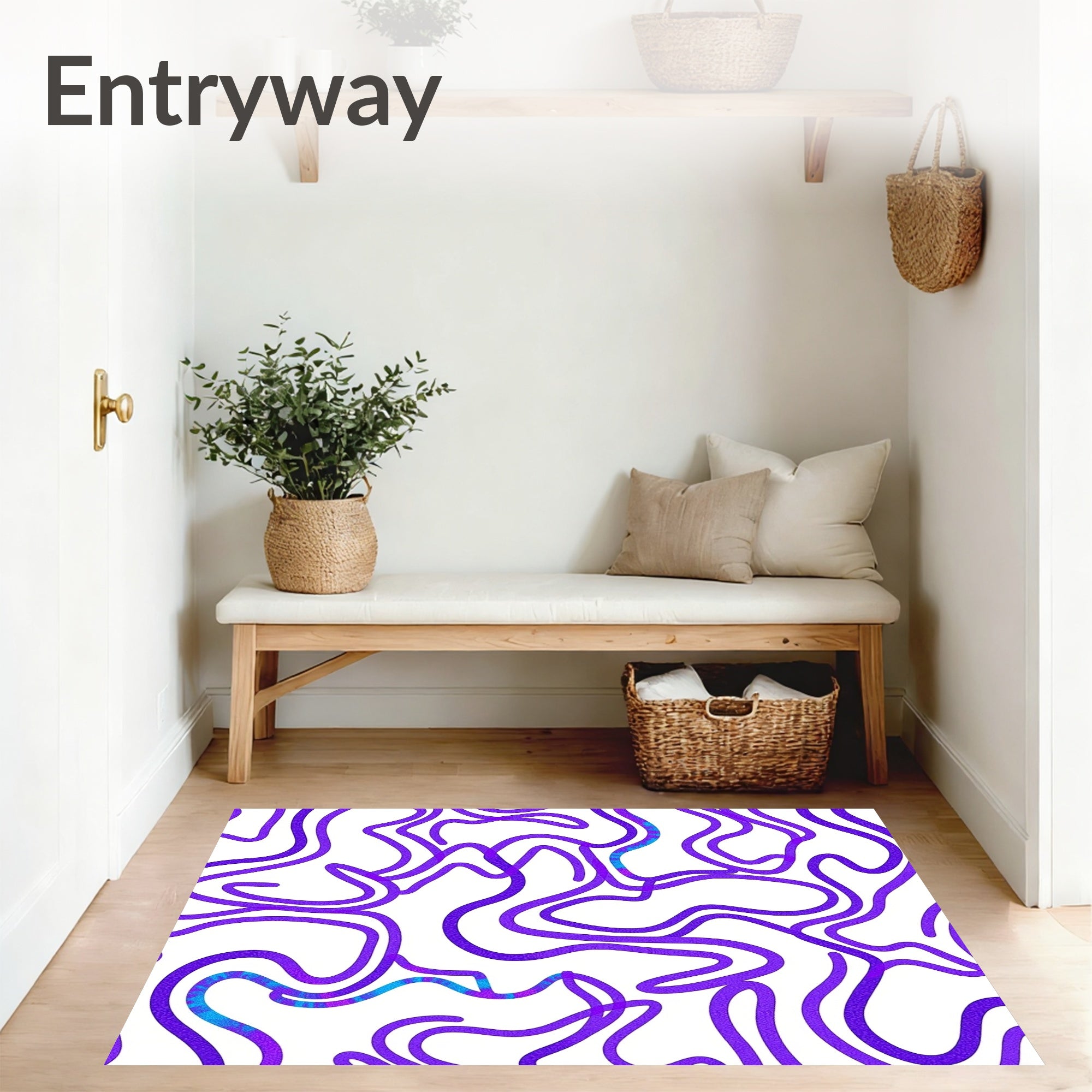 Ultra Soft Area Rug, Non Slip, Stain Resistant, Washable Area Rugs for Living Room, Bedroom, Modern Interlocking Wave Mosaic with Iridescent Highlights(Purple) Overview: