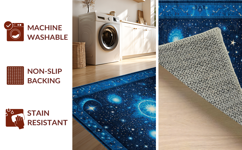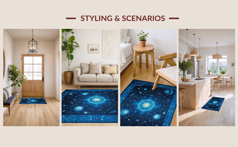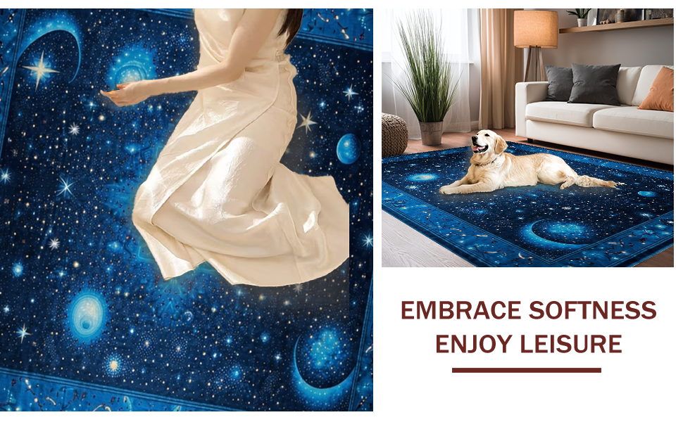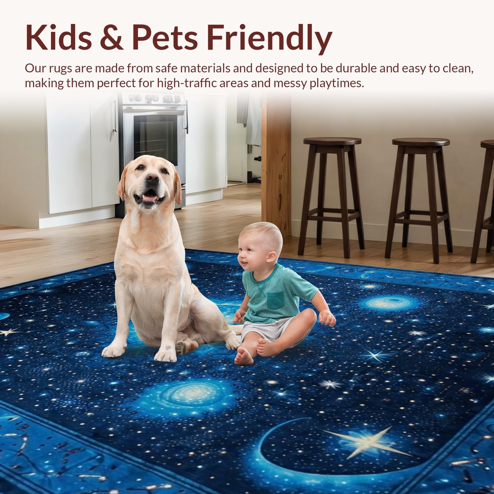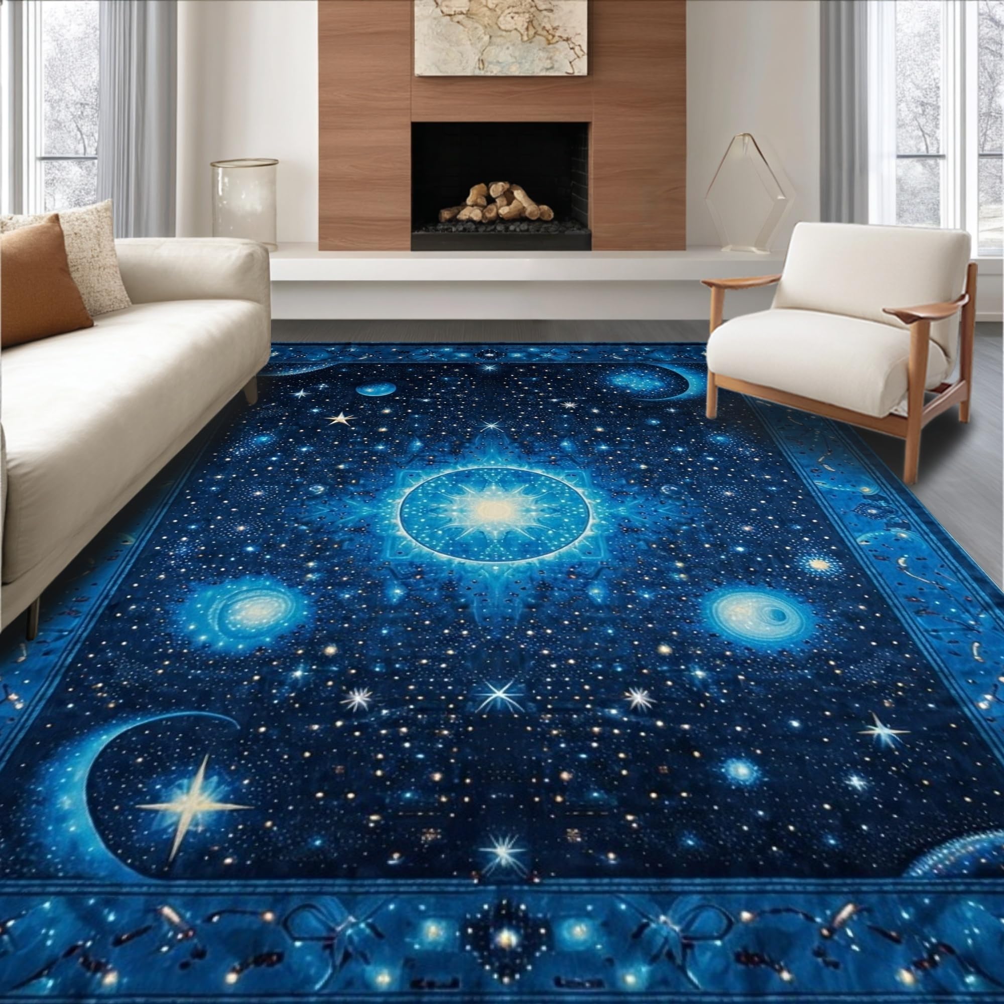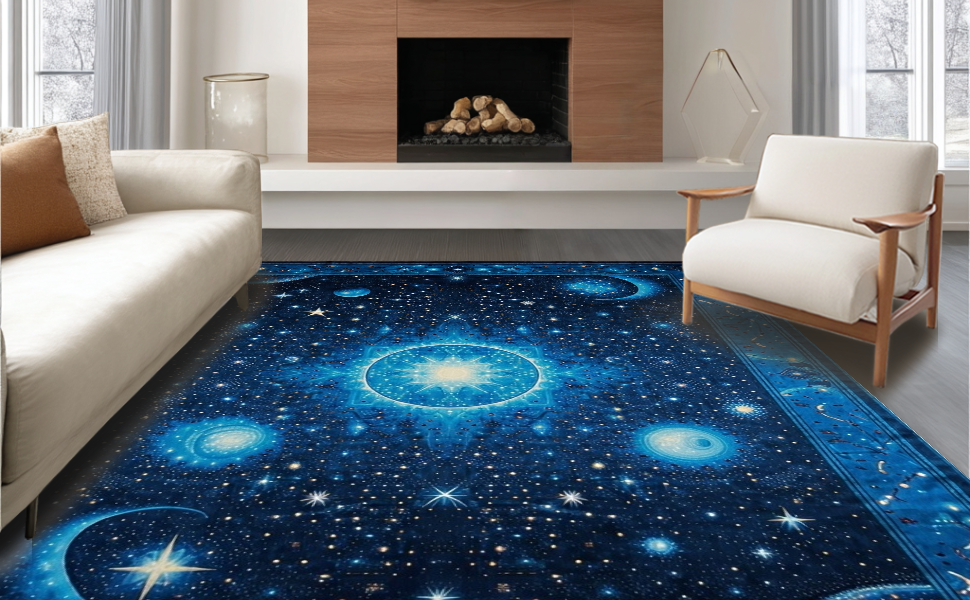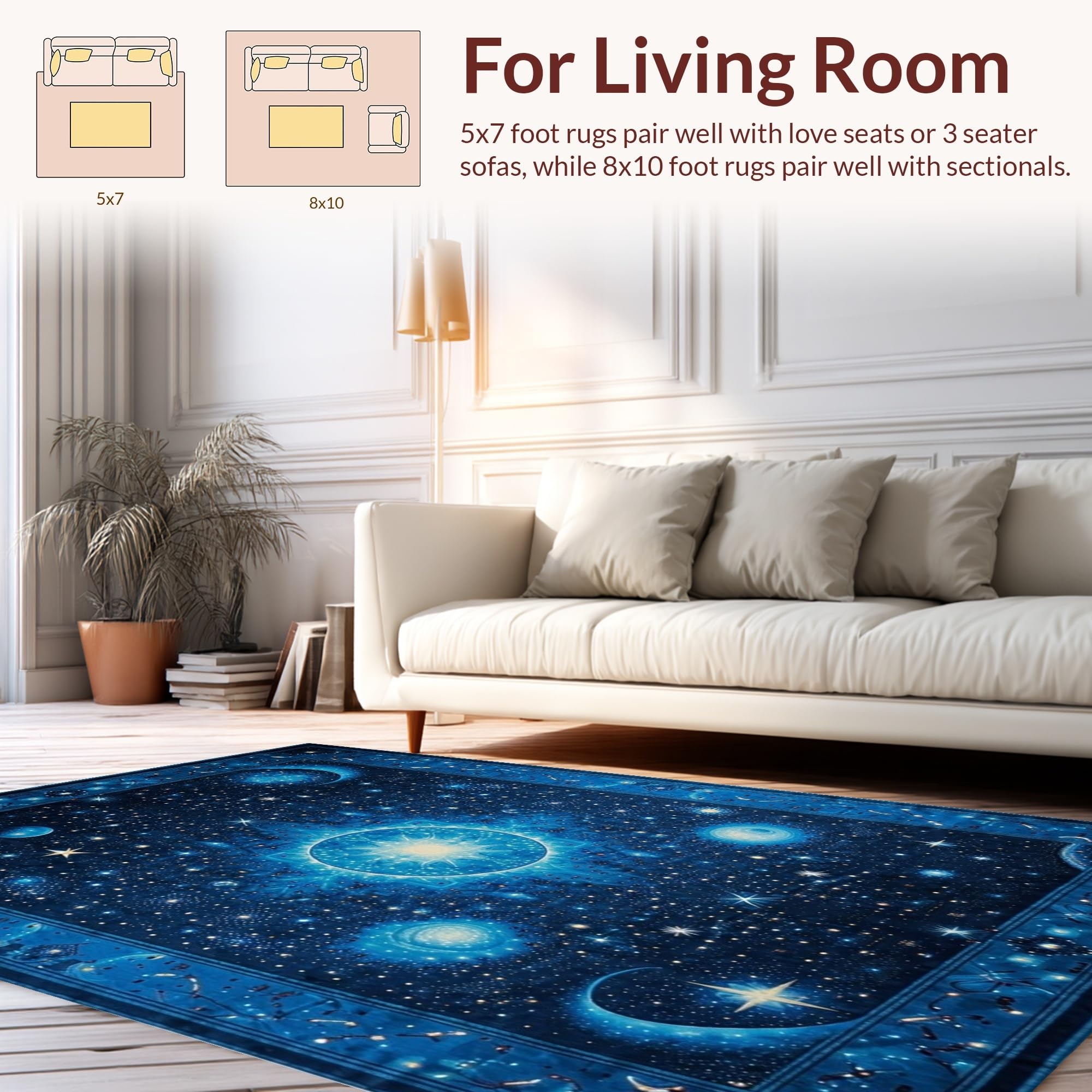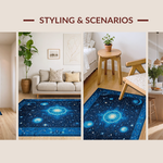 Ultra Soft Area Rug, Non Slip, Stain Resistant, Washable Area Rugs for Living Room, Bedroom, Modern Interstellar Journey Motif(Blue) Overview: