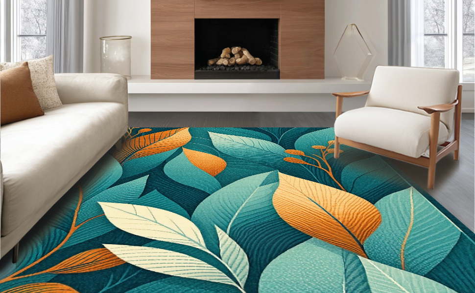 Ultra Soft Area Rug, Non Slip, Stain Resistant, Washable Area Rugs for Living Room, Bedroom, Modern Irregular Geometric Floral Style(Blue) Overview: