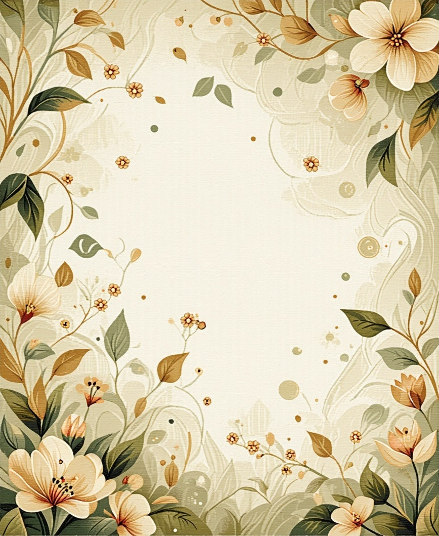 Modern Khaki and Beige Oval with Abstract Floral Design(Beige)