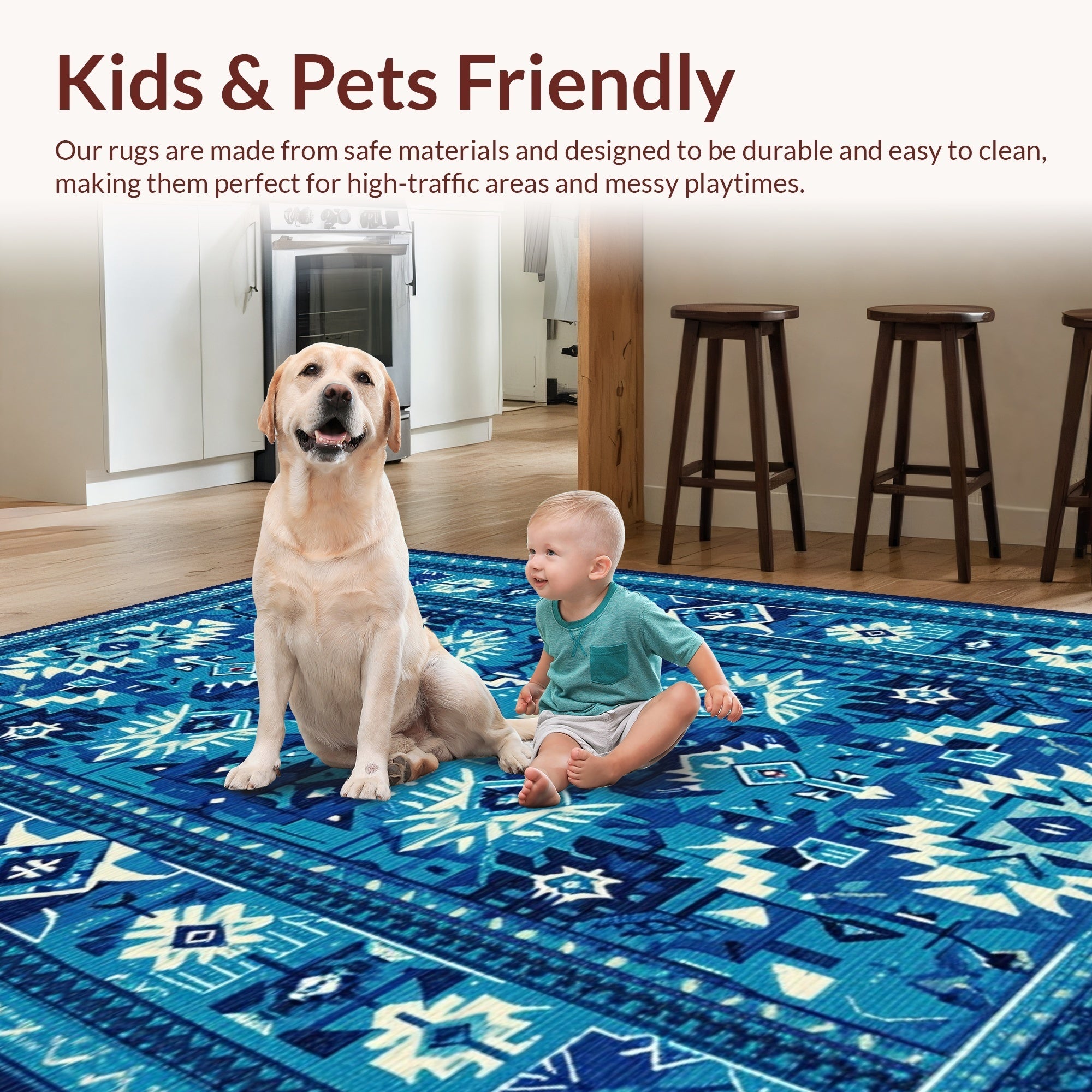Ultra Soft Area Rug, Non Slip, Stain Resistant, Washable Area Rugs for Living Room, Bedroom, Modern Light Blue Nursery Accent Carpet for Kids(Blue) Overview: