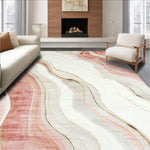 Modern Marble Inspired Area with Blush and Cream Abstract Swirls(White)