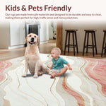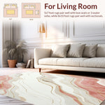 Ultra Soft Area Rug, Non Slip, Stain Resistant, Washable Area Rugs for Living Room, Bedroom, Modern Marble Inspired Area with Blush and Cream Abstract Swirls(White) Overview: