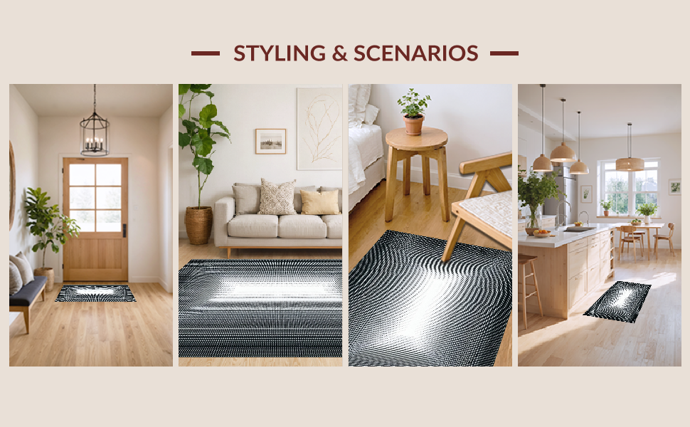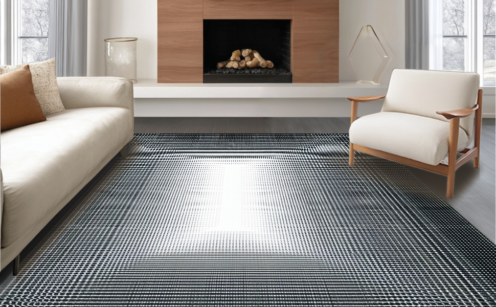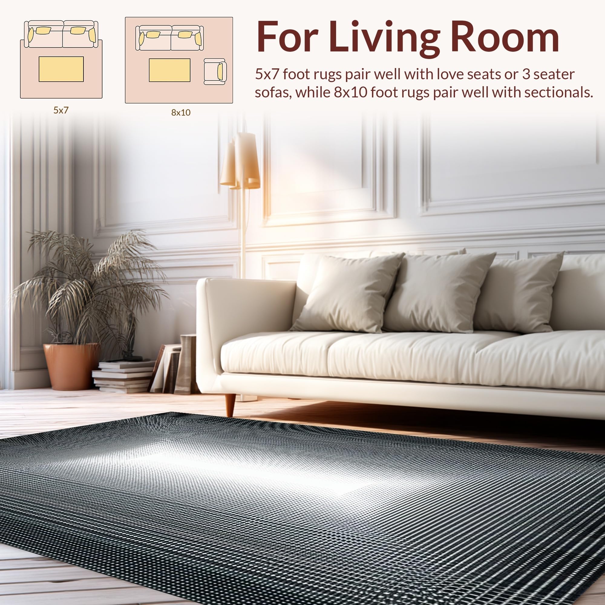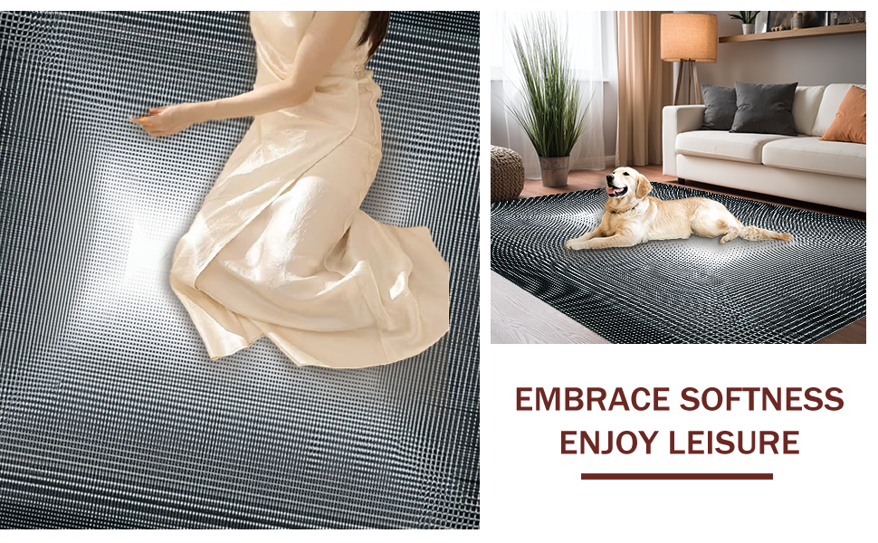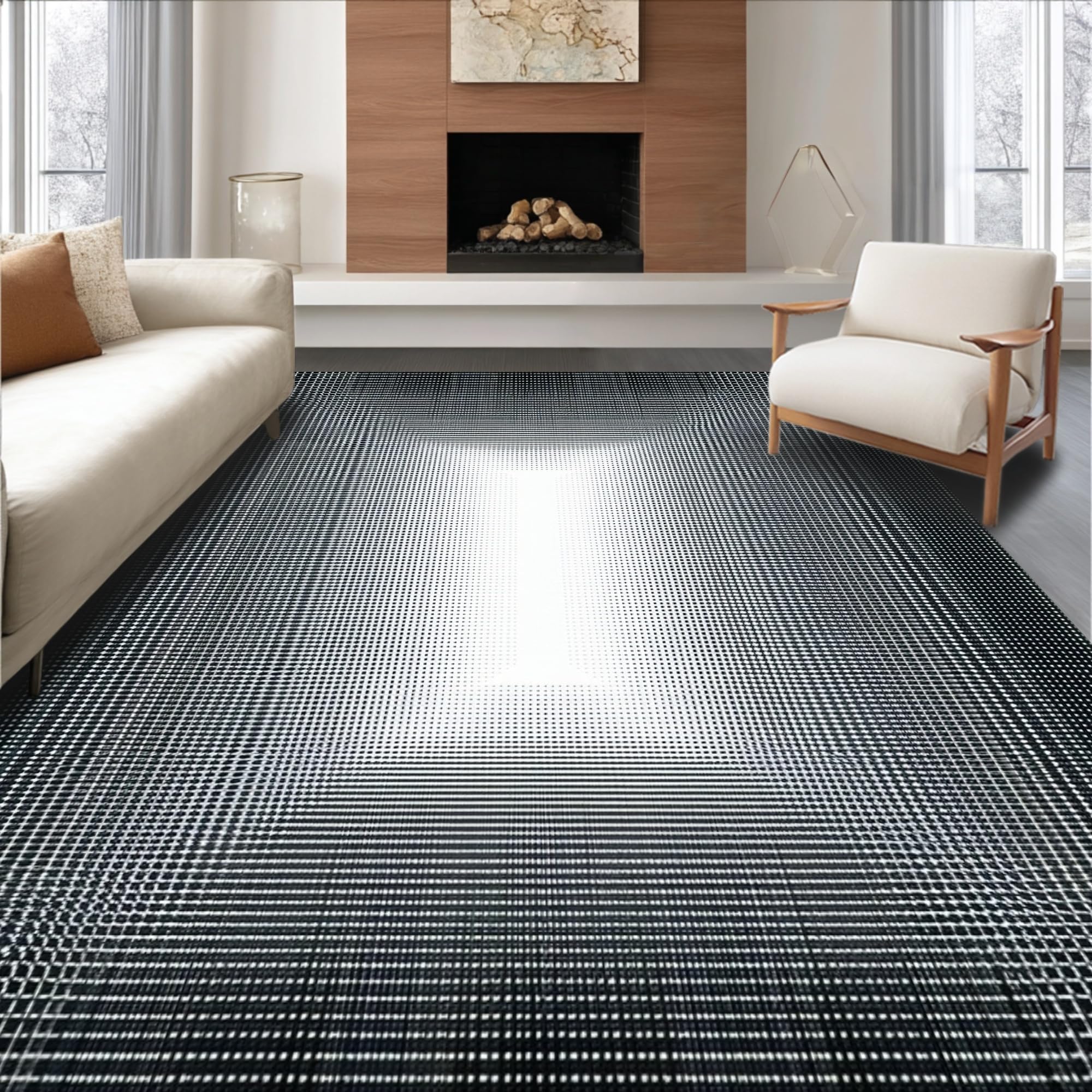 Ultra Soft Area Rug, Non Slip, Stain Resistant, Washable Area Rugs for Living Room, Bedroom, Modern Minimalist 3D Trap Aesthetic(Black) Overview: