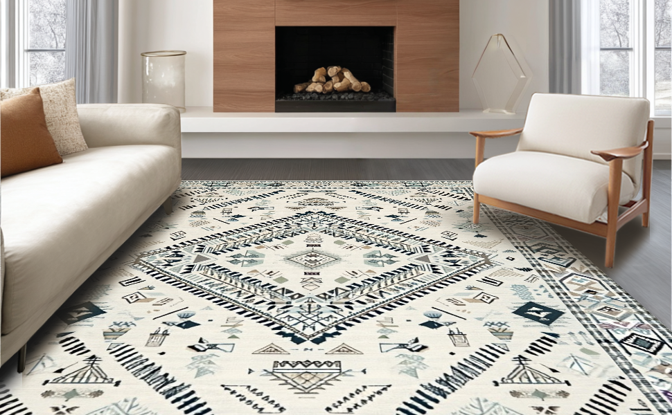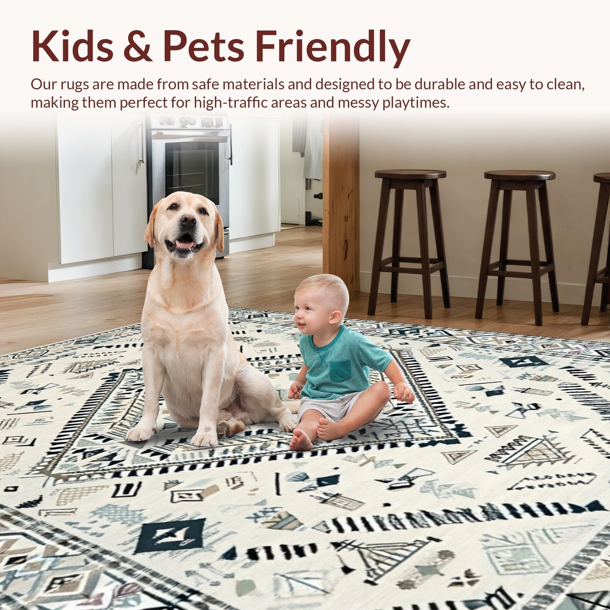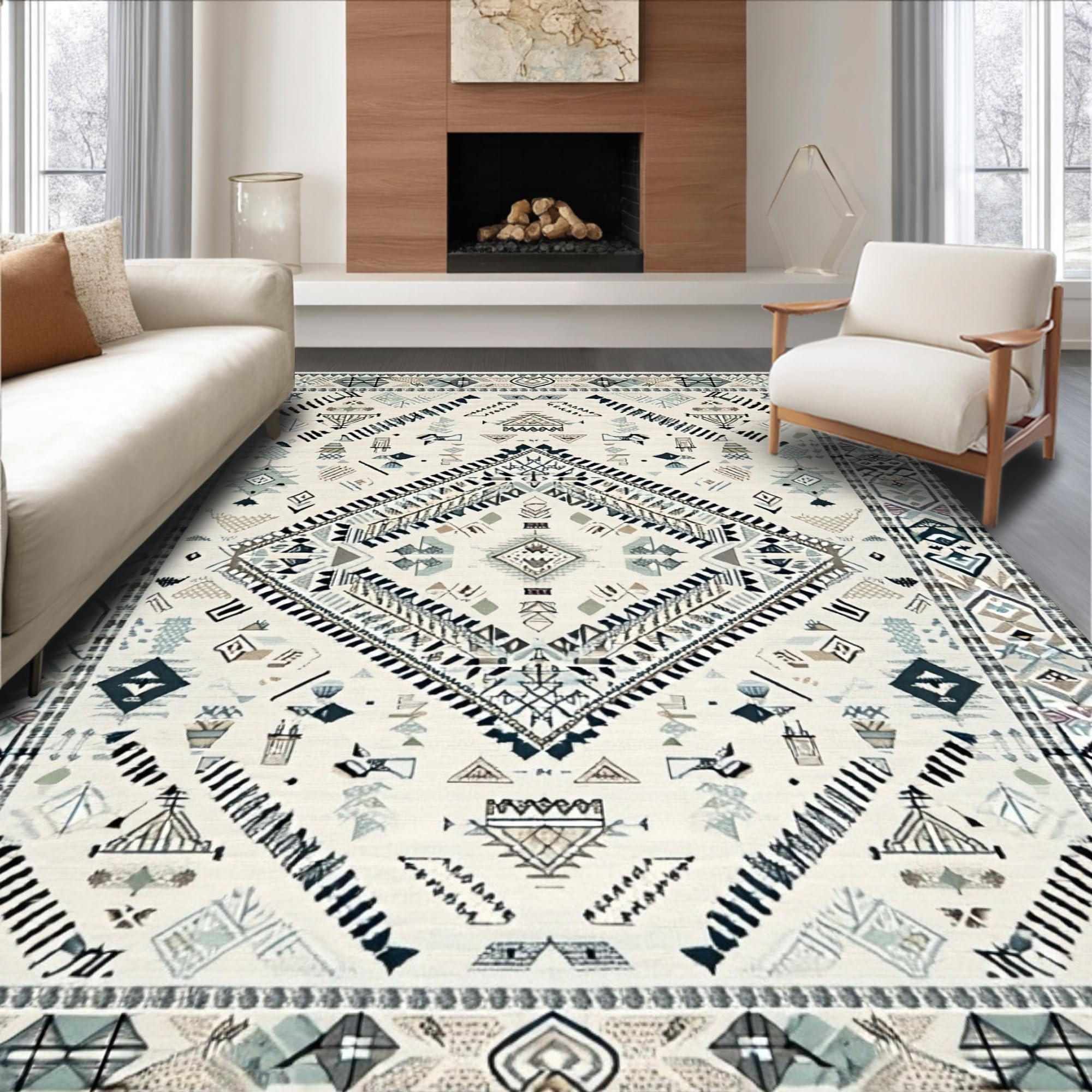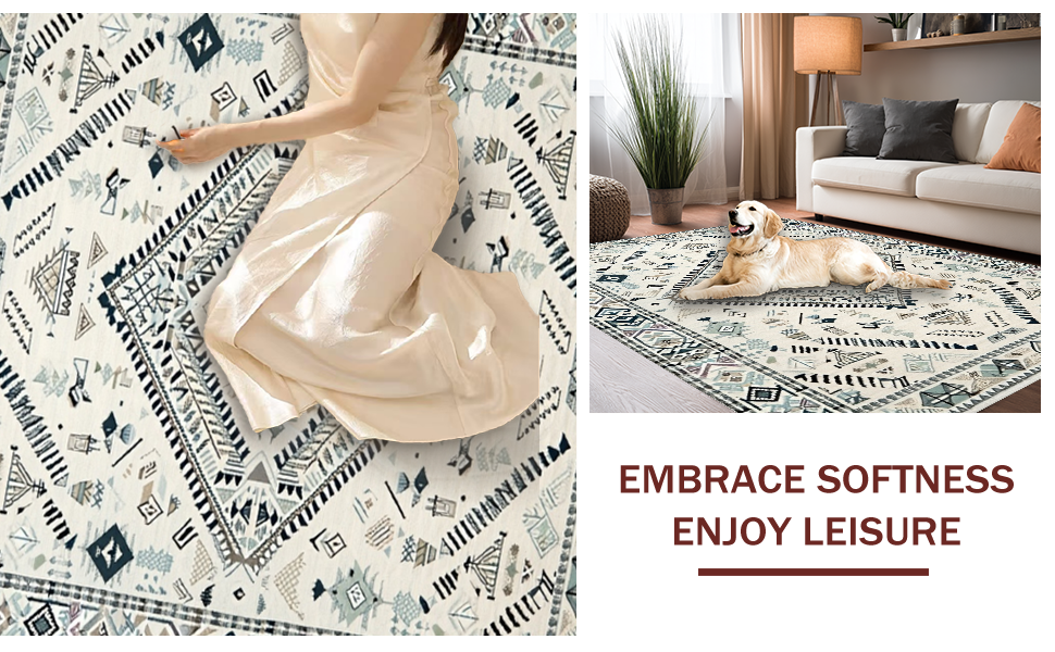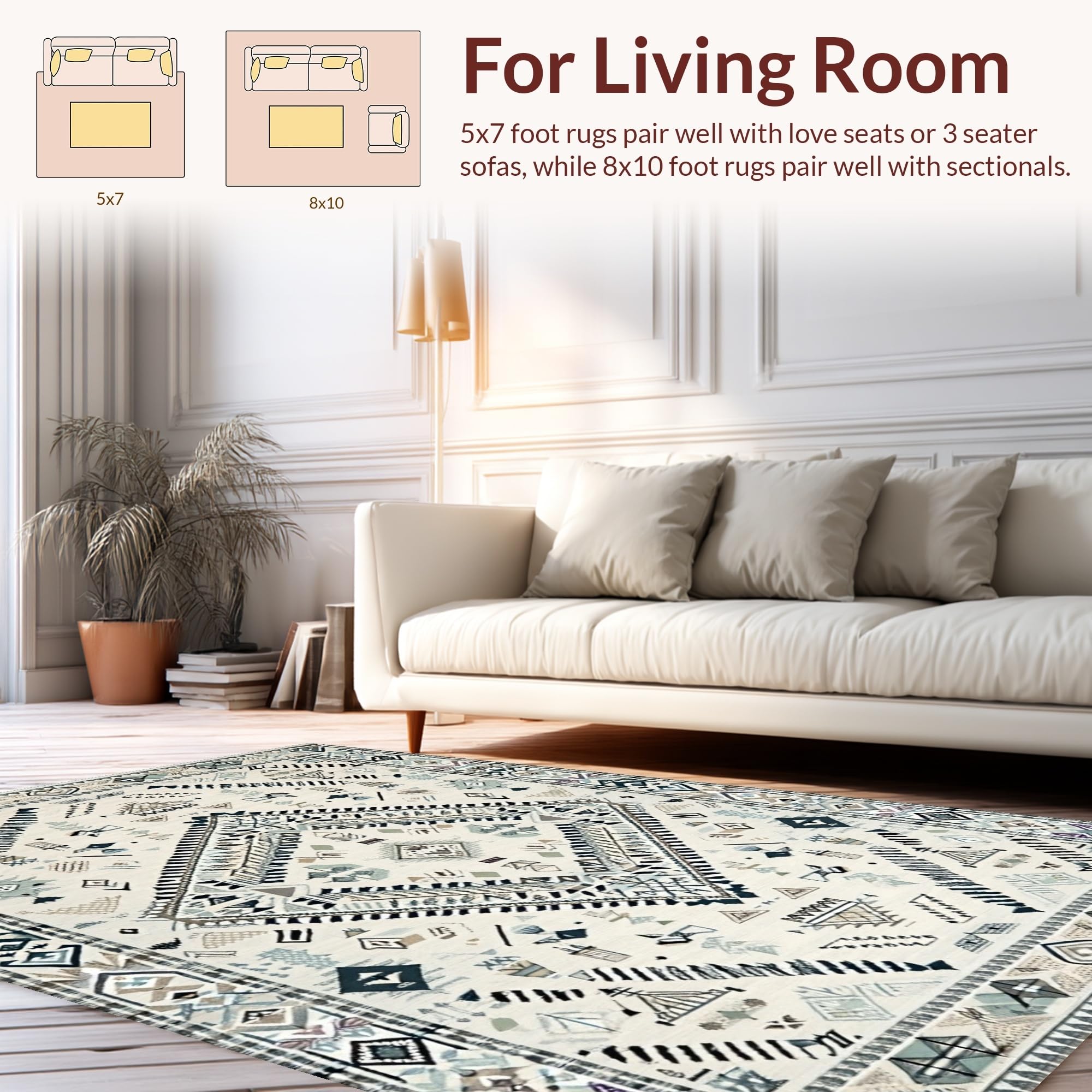 Ultra Soft Area Rug, Non Slip, Stain Resistant, Washable Area Rugs for Living Room, Bedroom, Modern Minimalist Geometric Style(Beige) Overview:
