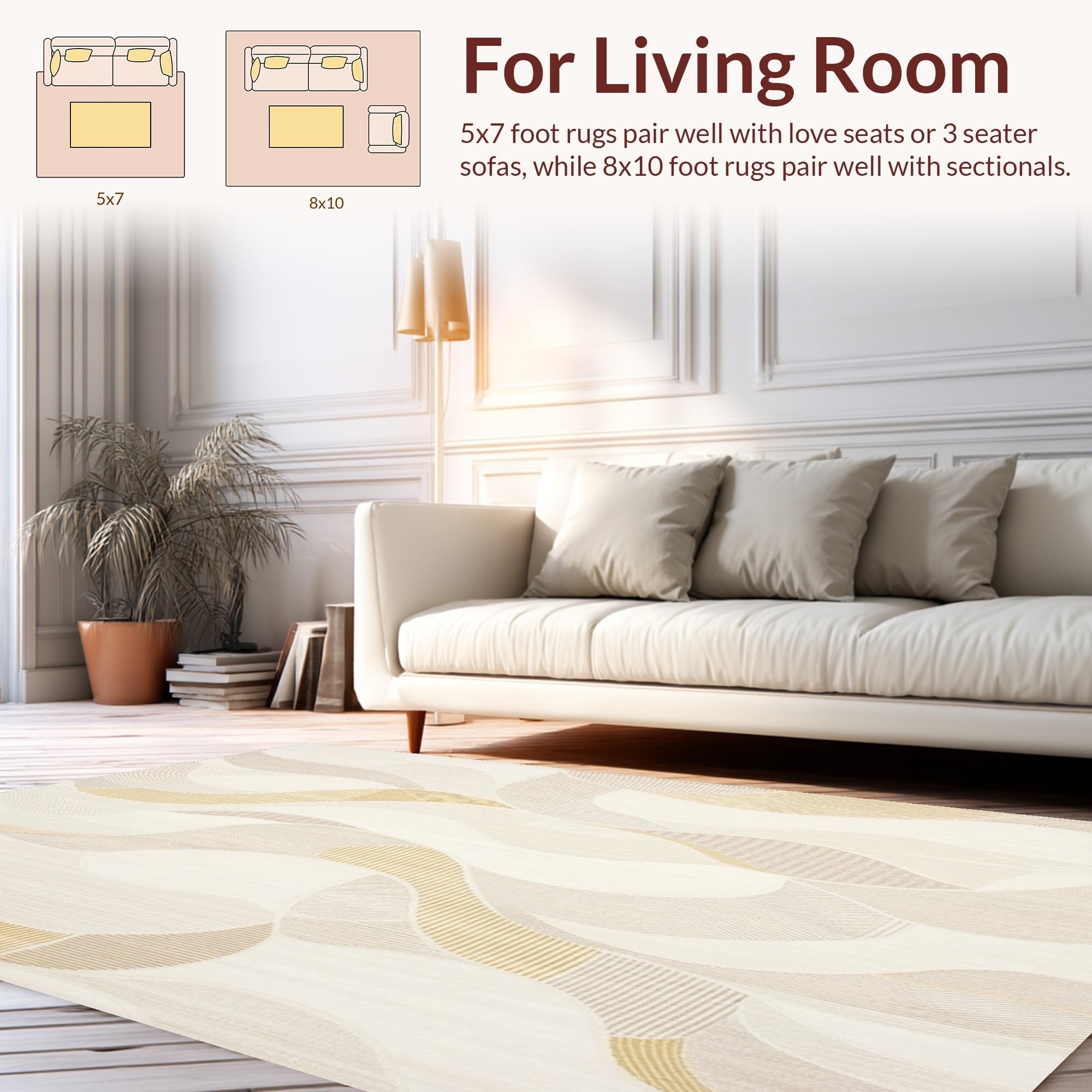 Ultra Soft Area Rug, Non Slip, Stain Resistant, Washable Area Rugs for Living Room, Bedroom, Modern Minimalist Knot Design Area With Wave(Beige) Overview: