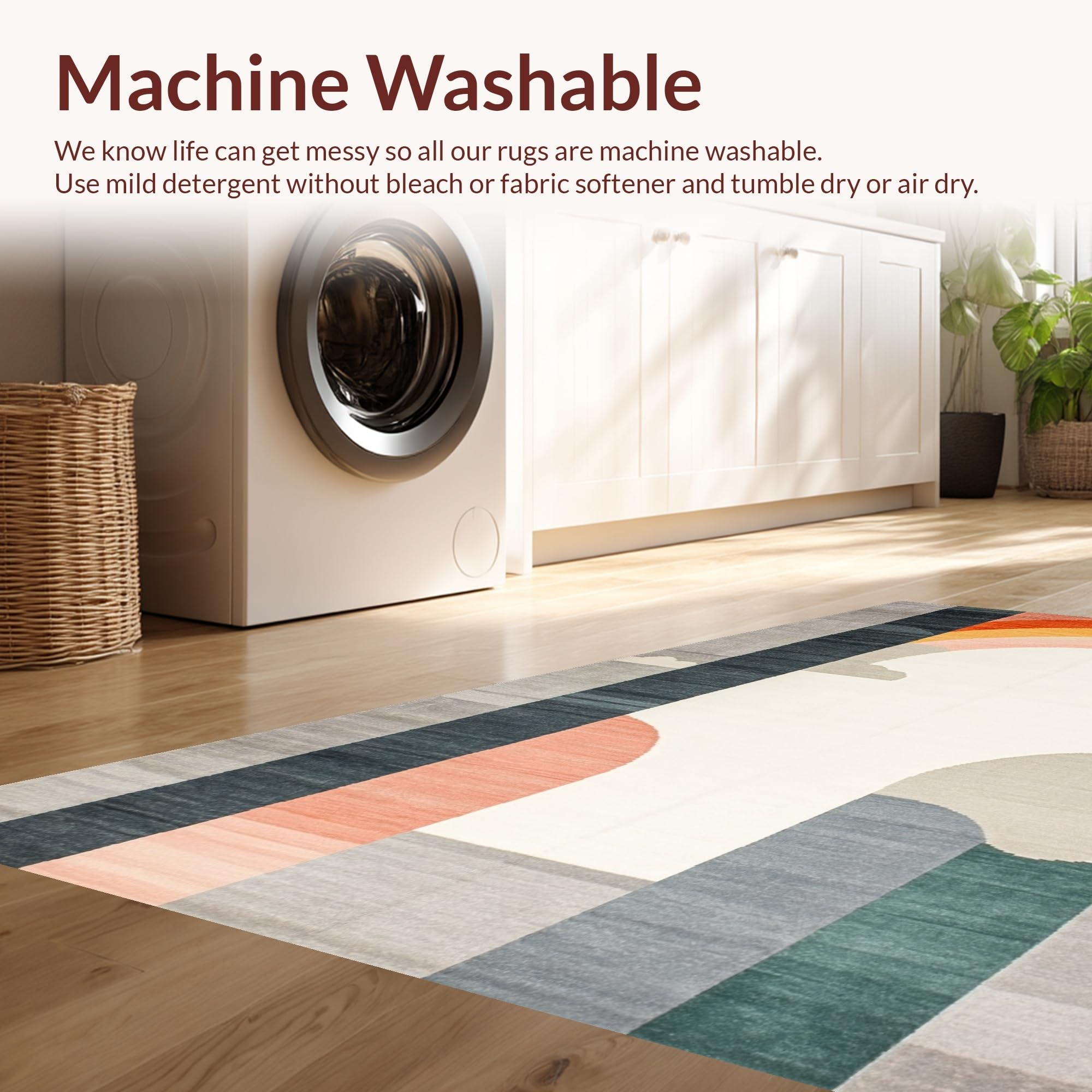 - Machine Washable: Our rugs can be easily thrown in the wash machine.