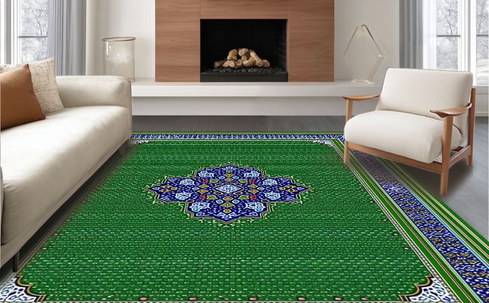 Ultra Soft Area Rug, Non Slip, Stain Resistant, Washable Area Rugs for Living Room, Bedroom, Modern Minimalist Linear Elements(Green) Overview: