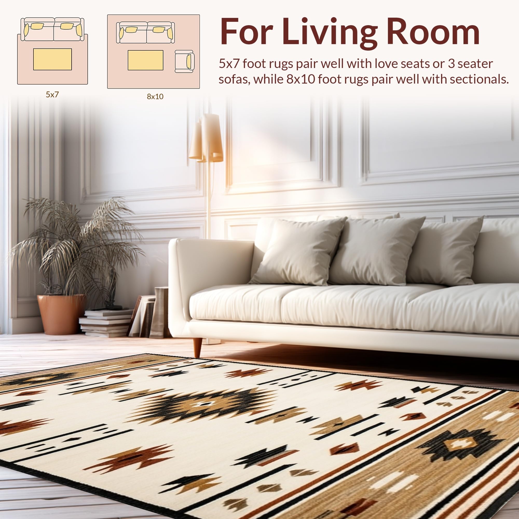 Ultra Soft Area Rug, Non Slip, Stain Resistant, Washable Area Rugs for Living Room, Bedroom, Modern Minimalist Organic Patterns(Beige) Overview: