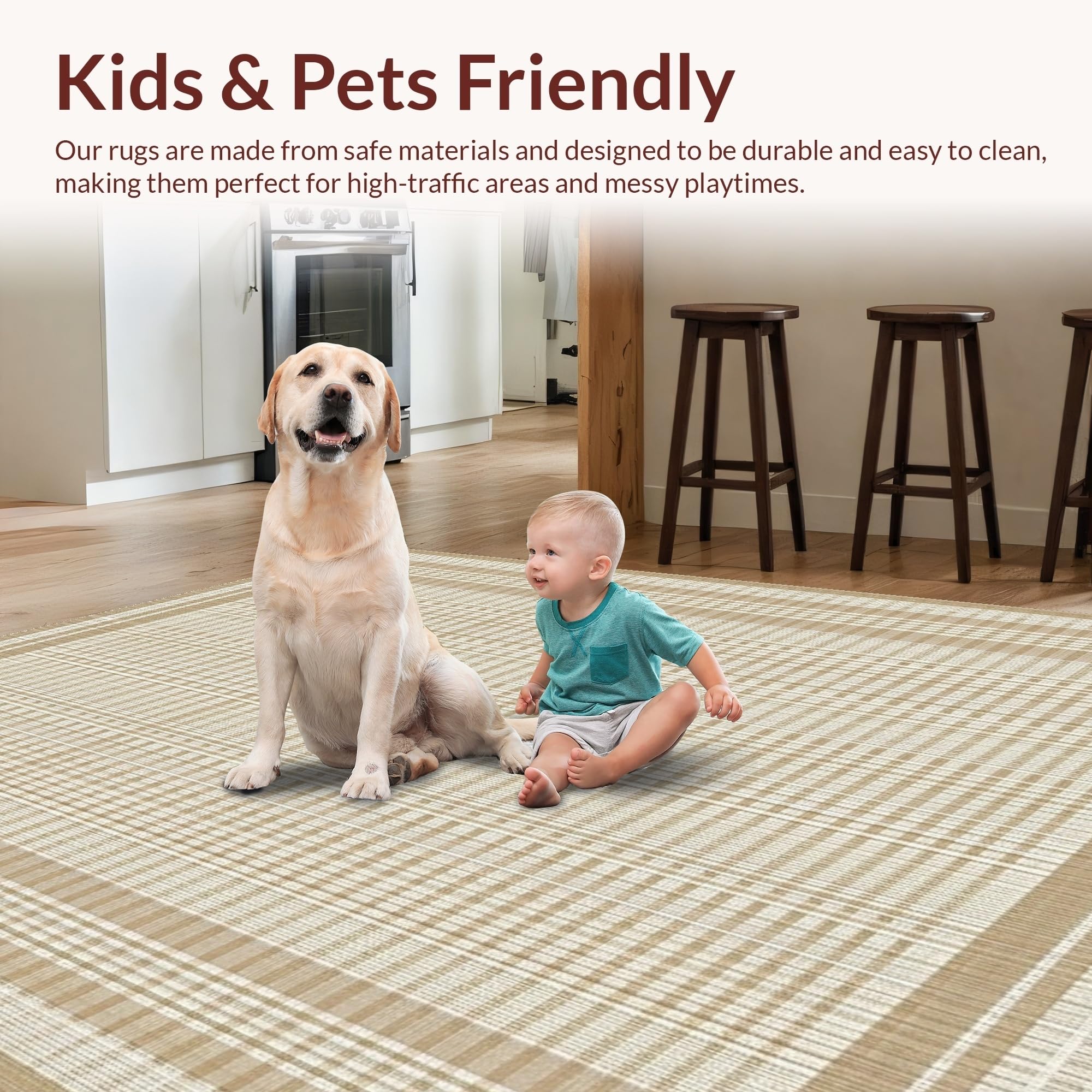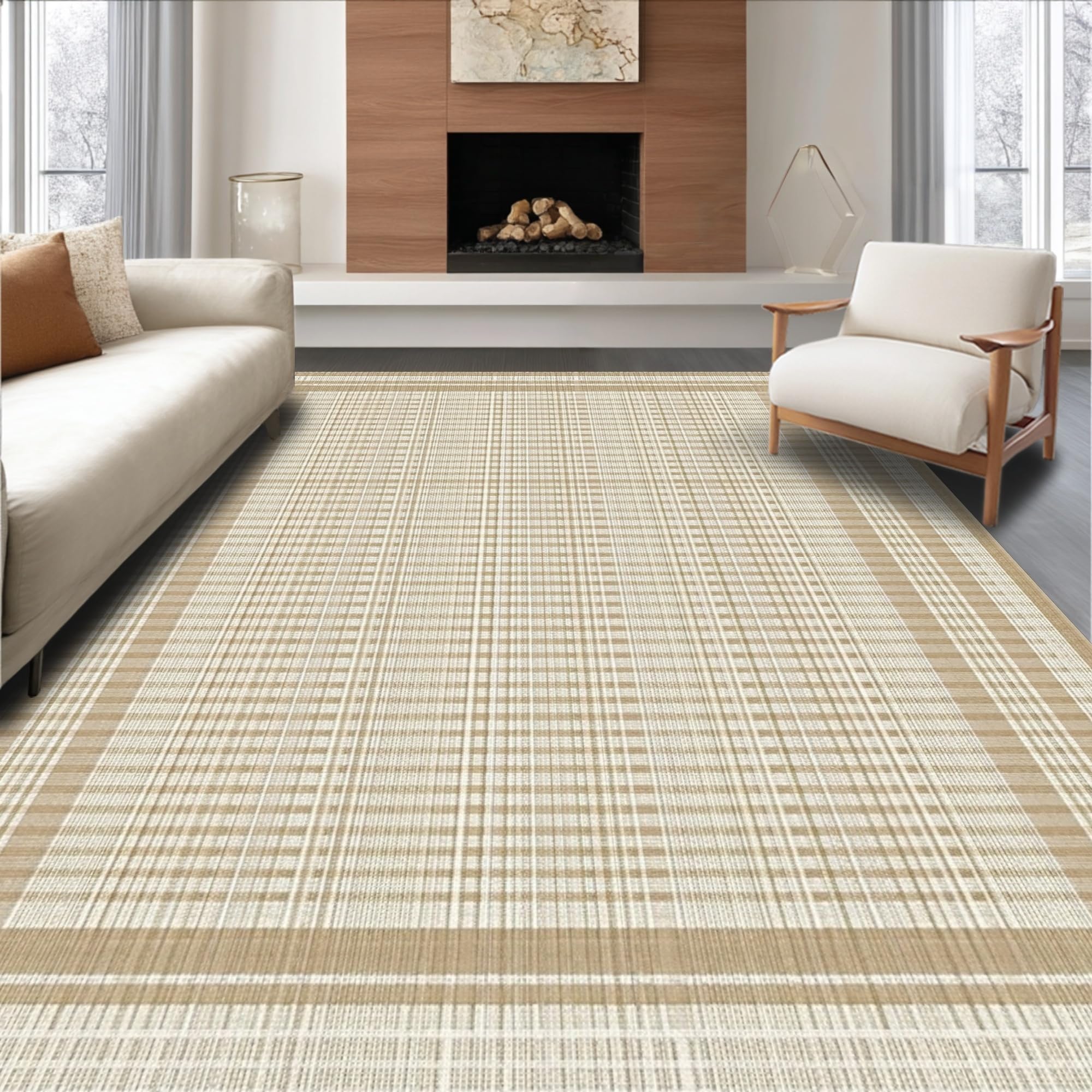 Ultra Soft Area Rug, Non Slip, Stain Resistant, Washable Area Rugs for Living Room, Bedroom, Modern Minimalist Tasseled Fringe(Beige) Overview:
