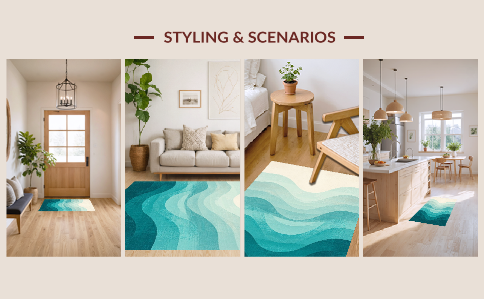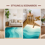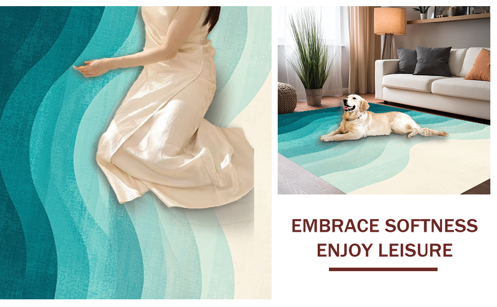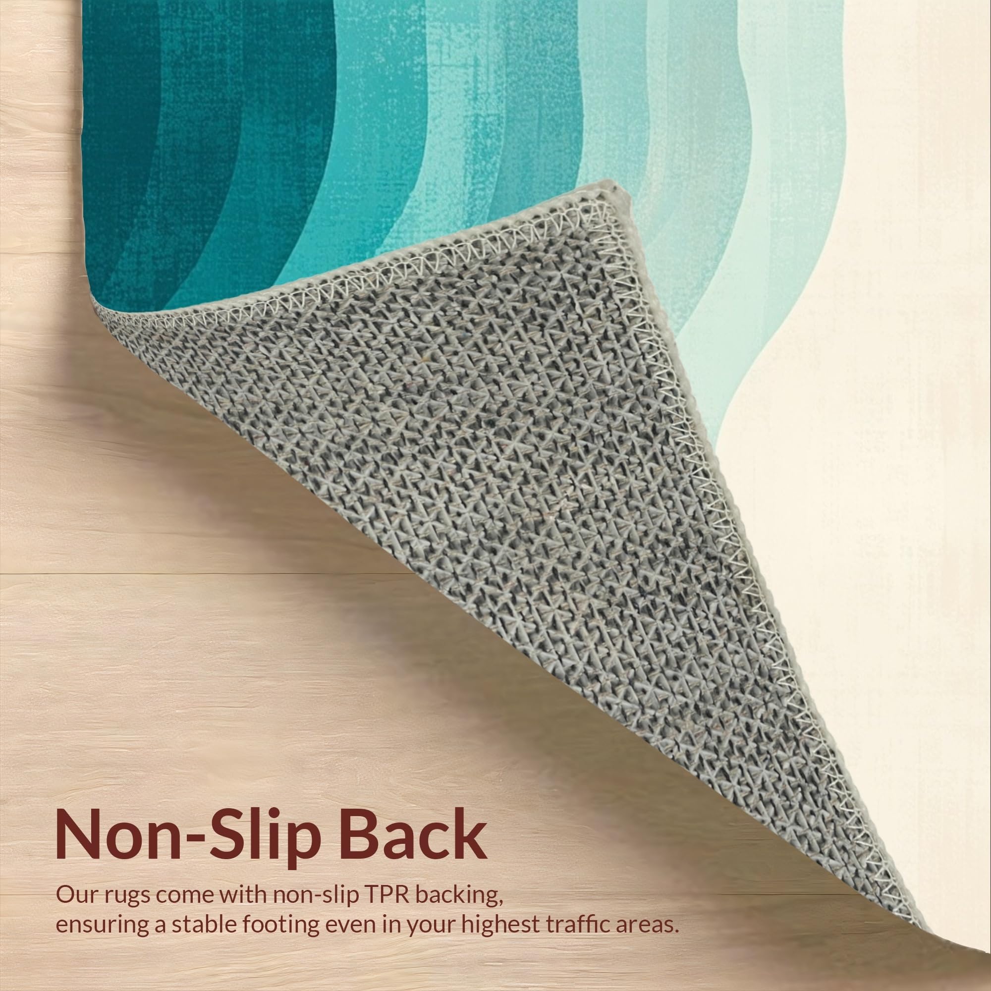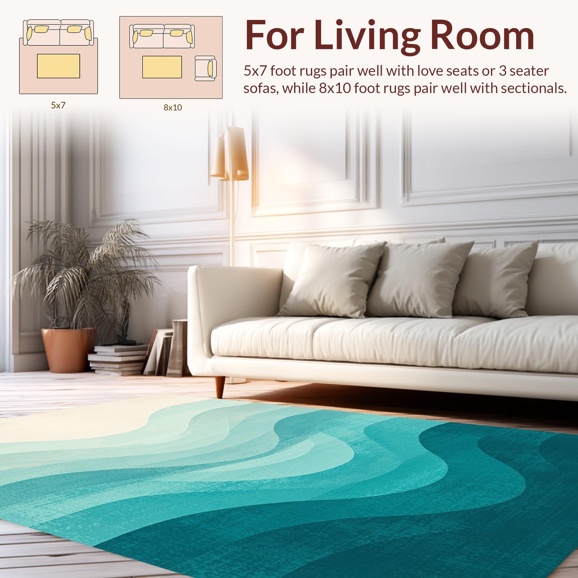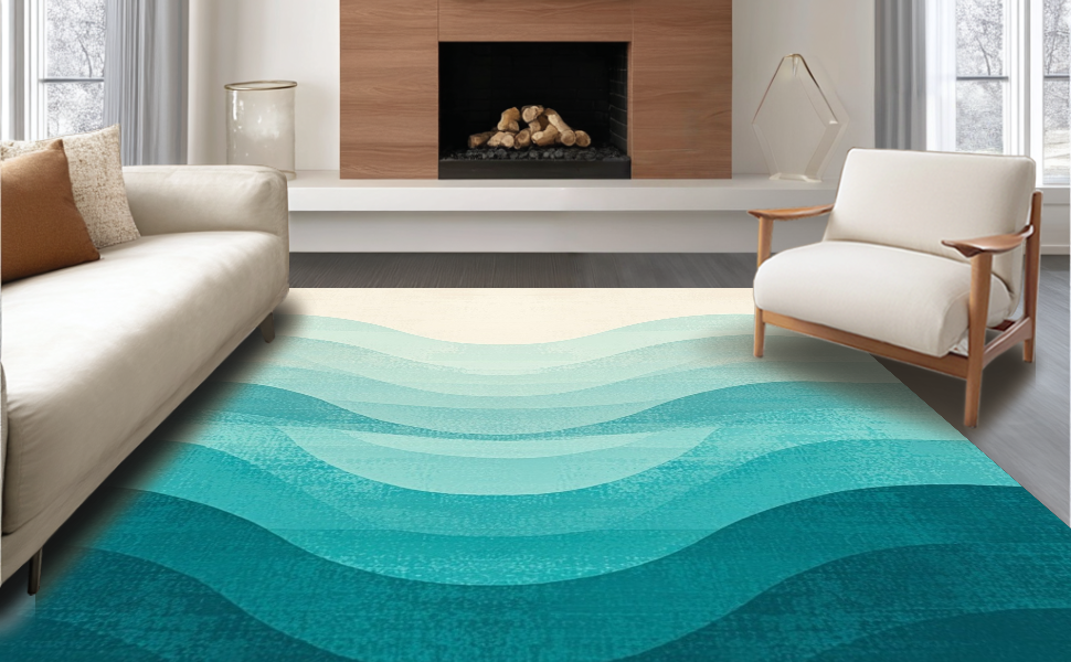 Ultra Soft Area Rug, Non Slip, Stain Resistant, Washable Area Rugs for Living Room, Bedroom, Modern Minimalist Tidal Wave Motif(Blue) Overview: