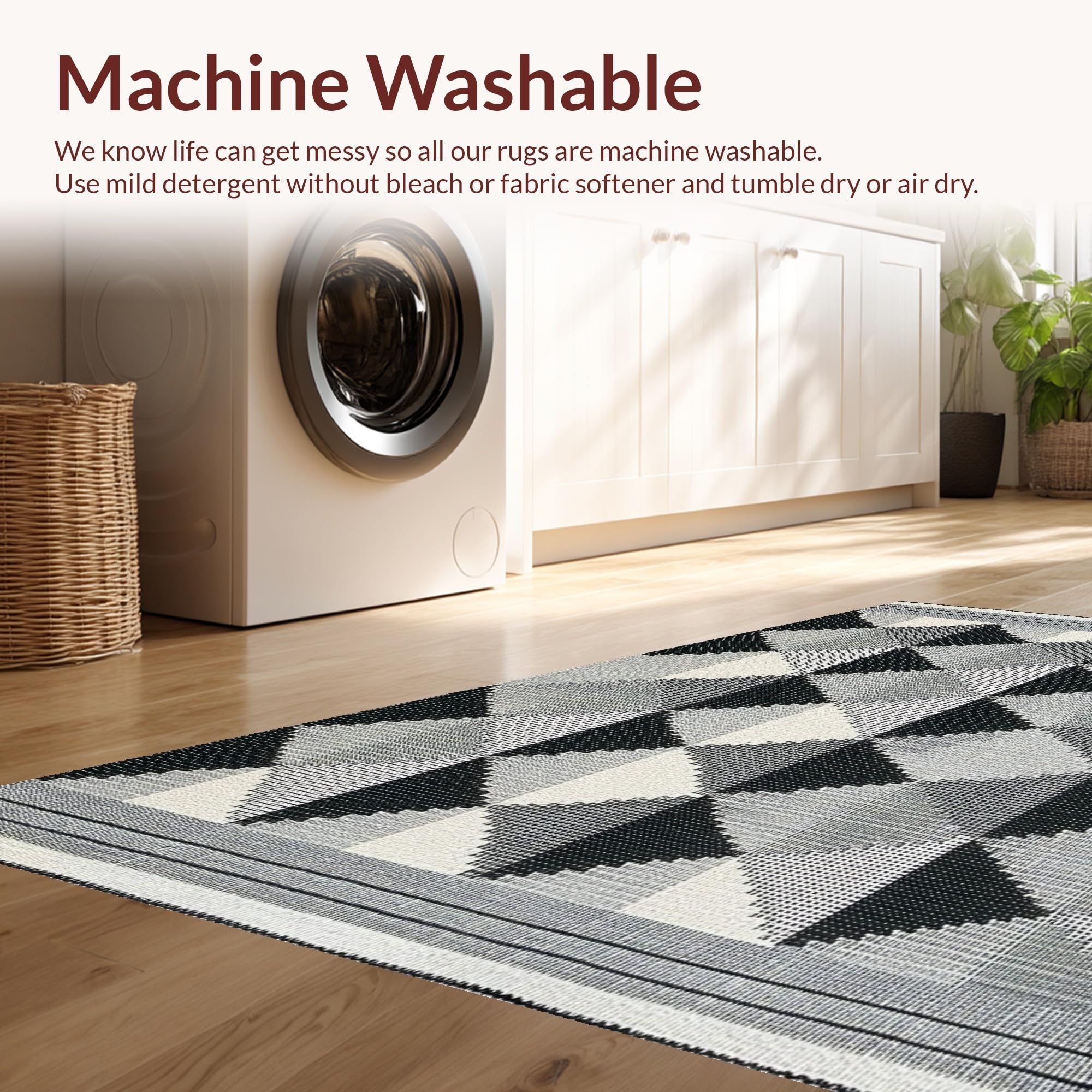 - Machine Washable: Our rugs can be easily thrown in the wash machine.