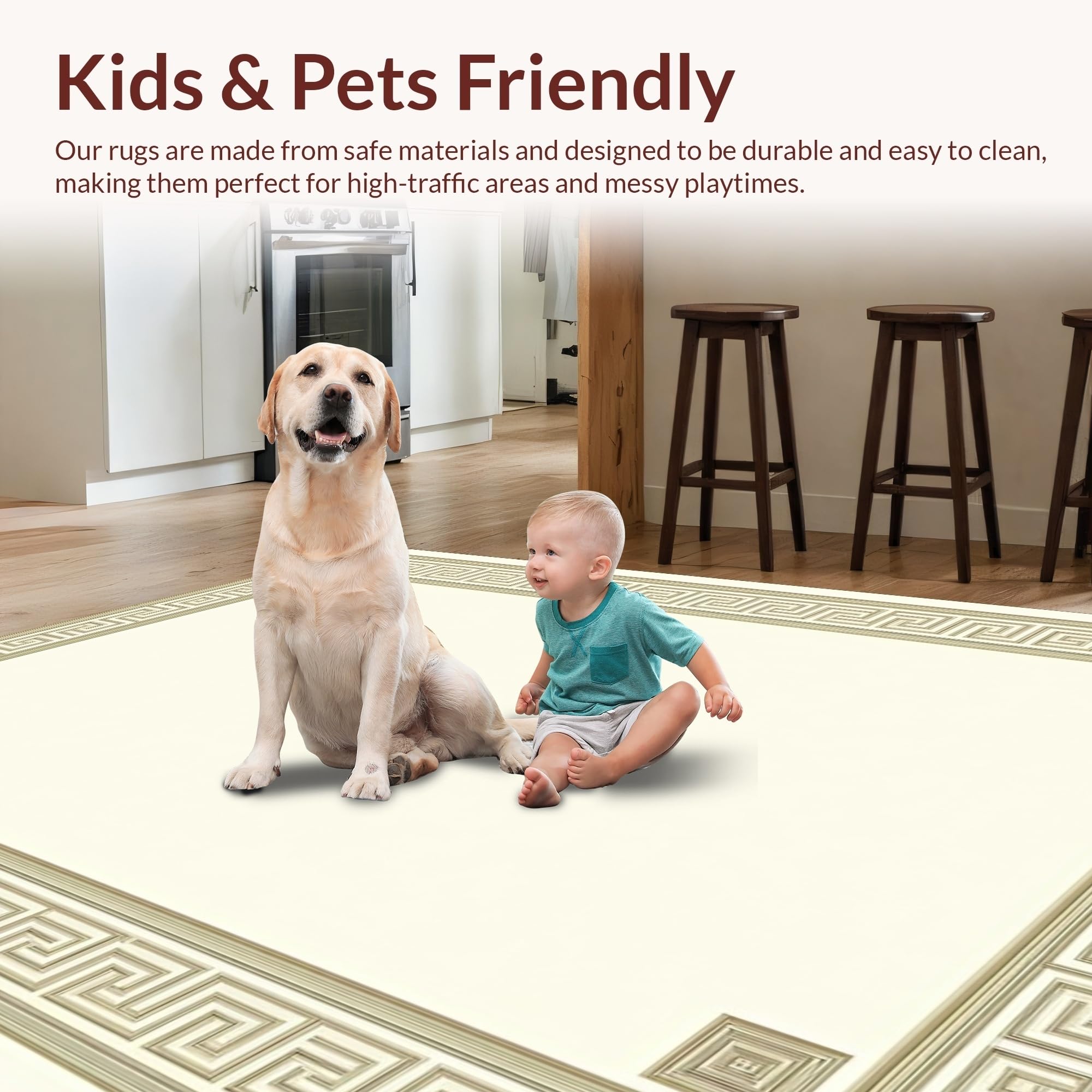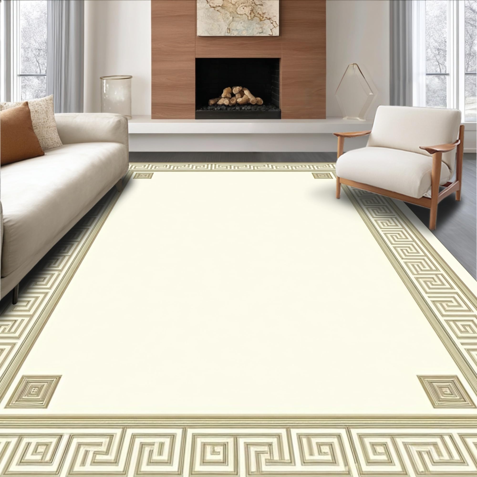 Ultra Soft Area Rug, Non Slip, Stain Resistant, Washable Area Rugs for Living Room, Bedroom, Modern Minimalist Trellis Design(Beige) Overview: