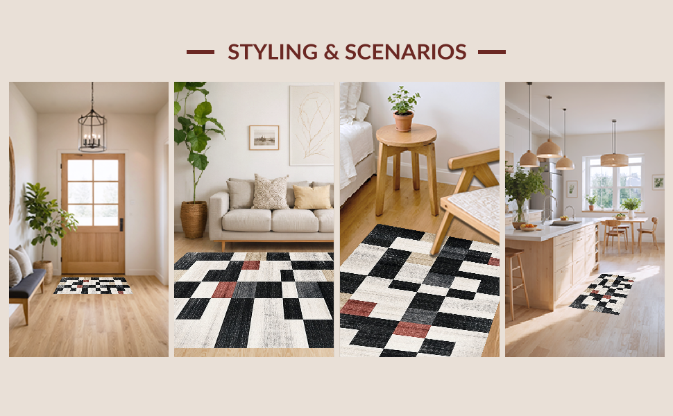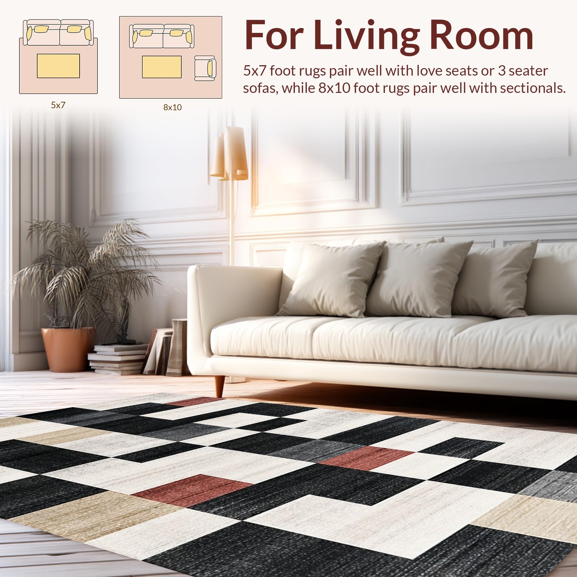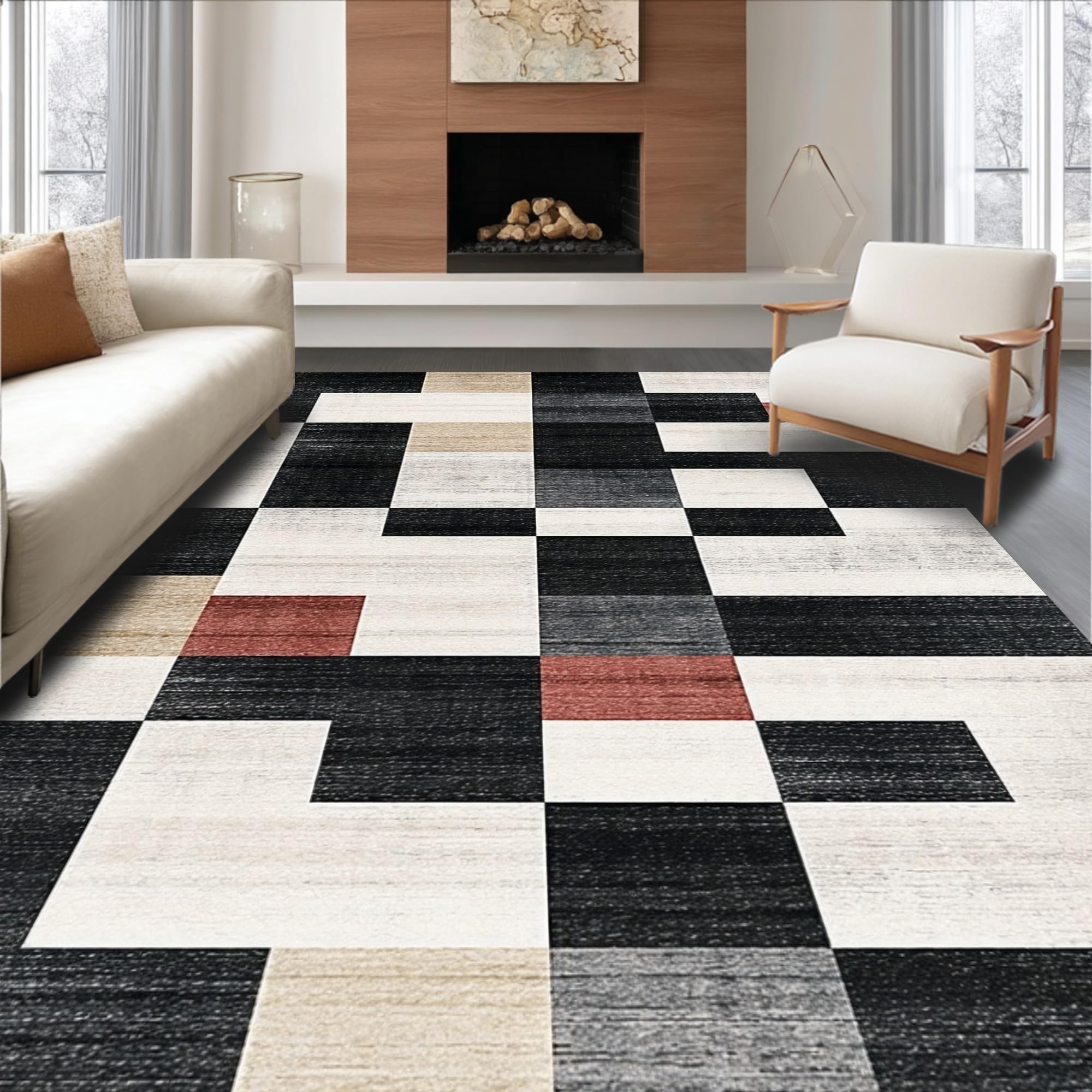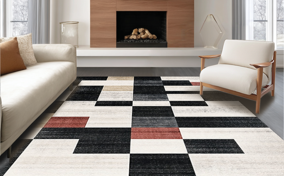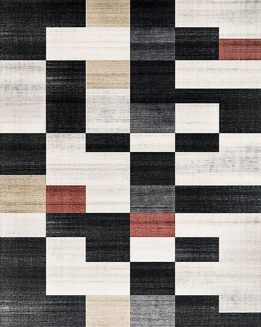 Ultra Soft Area Rug, Non Slip, Stain Resistant, Washable Area Rugs for Living Room, Bedroom, Modern Monochrome Diamond Pattern(Gray) Overview: