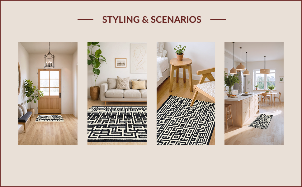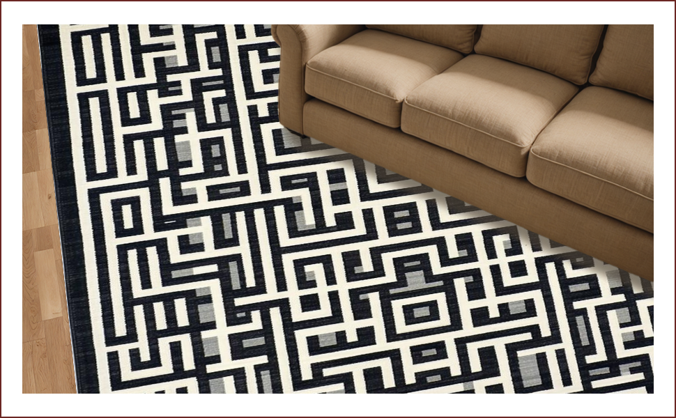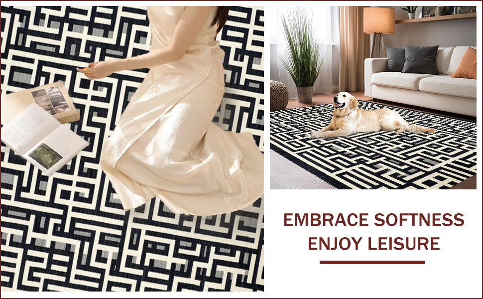 Ultra Soft Area Rug, Non Slip, Stain Resistant, Washable Area Rugs for Living Room, Bedroom, Modern Monochrome Trellis Aesthetic(Black) Overview: