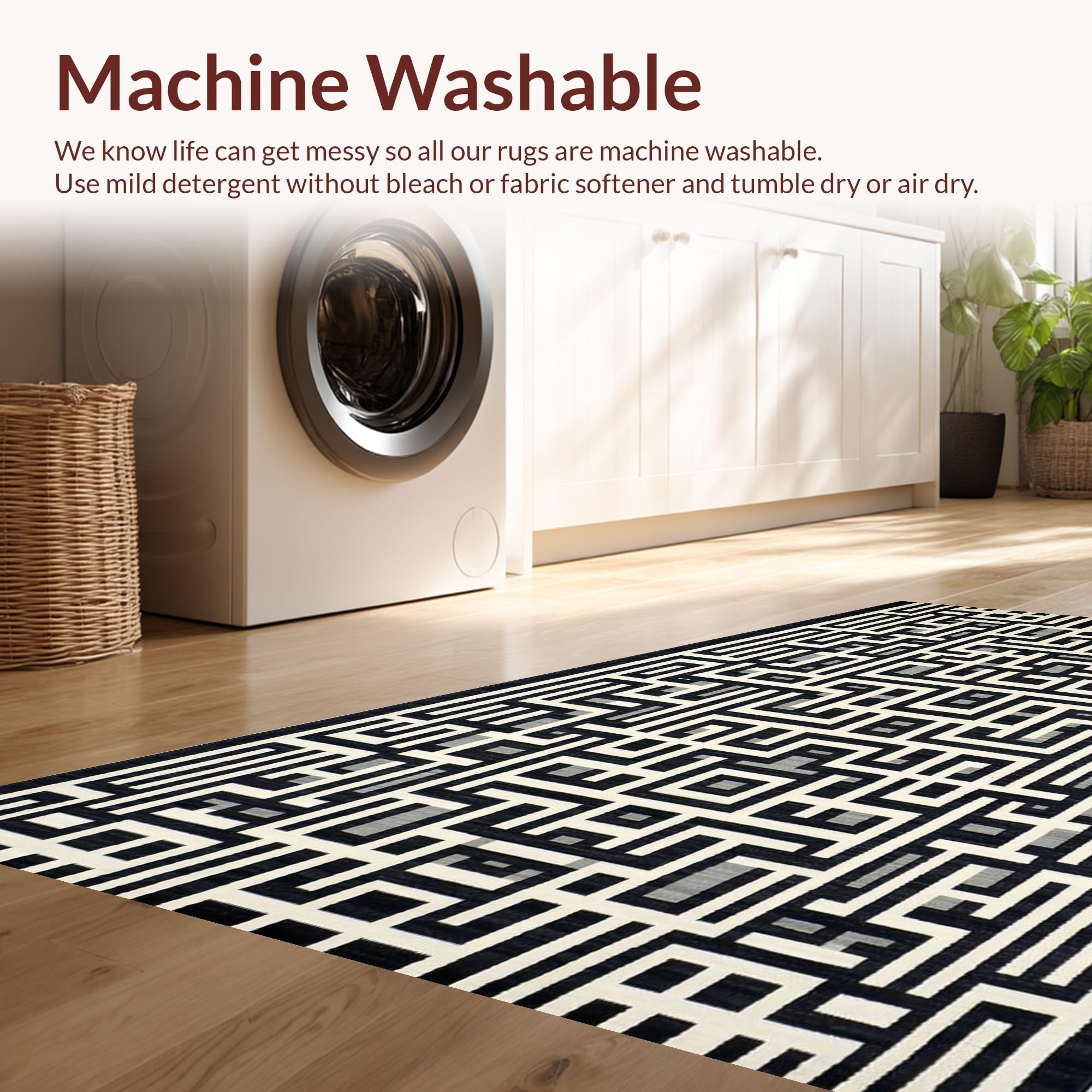 - Machine Washable: Our rugs can be easily thrown in the wash machine.