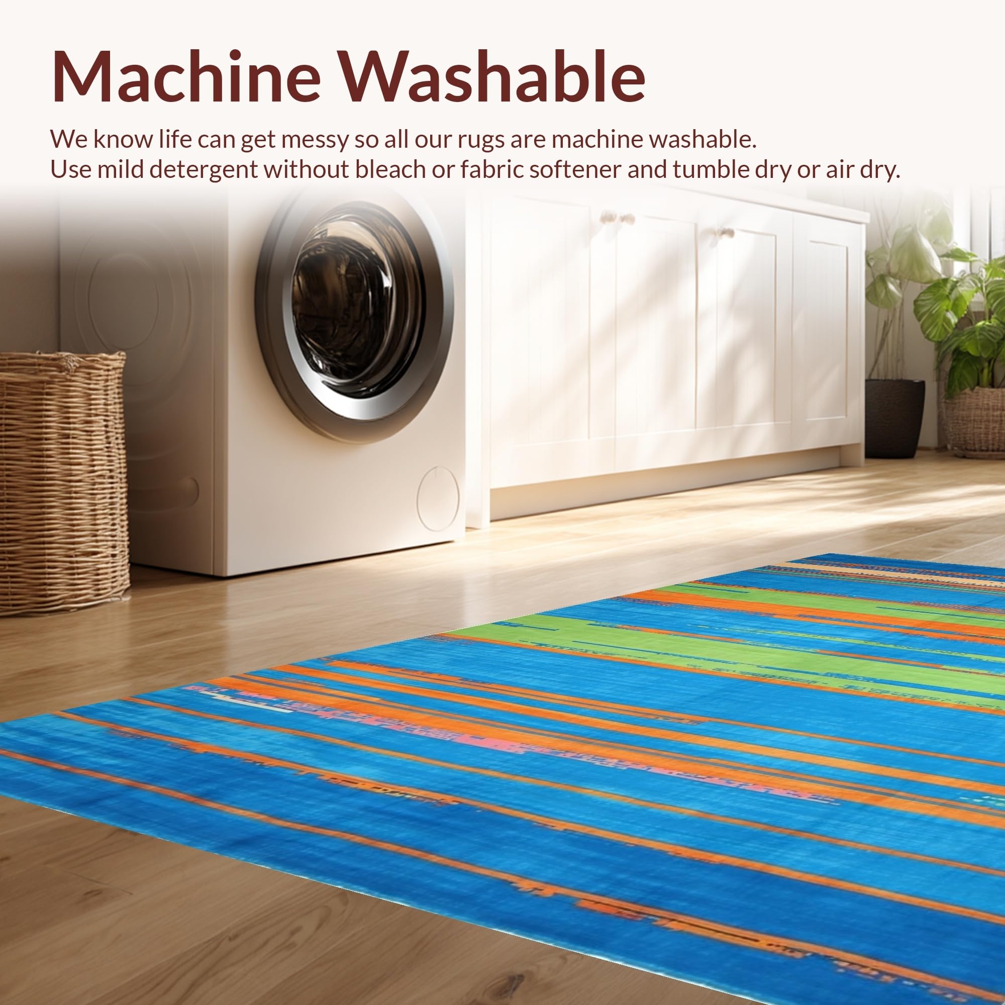 - Machine Washable: Our rugs can be easily thrown in the wash machine.