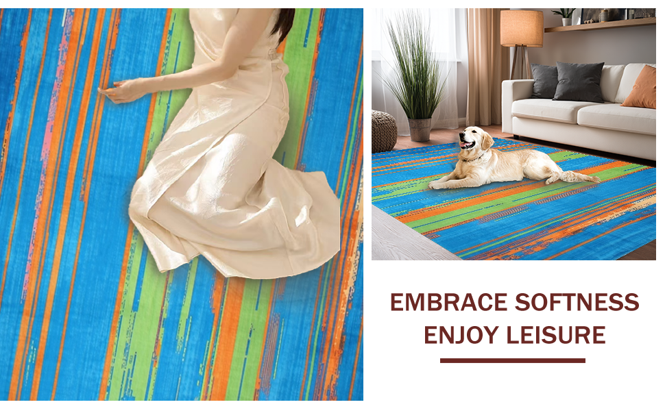 Ultra Soft Area Rug, Non Slip, Stain Resistant, Washable Area Rugs for Living Room, Bedroom, Modern Multicolor Abstract Lines(Blue) Overview: