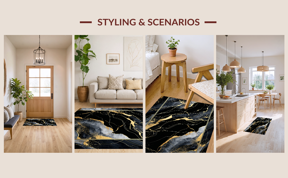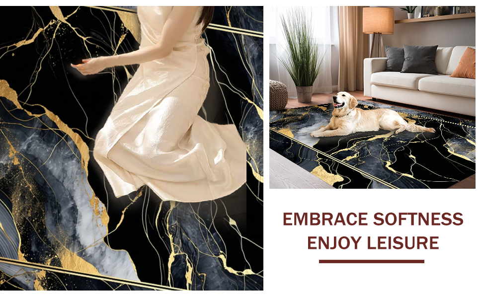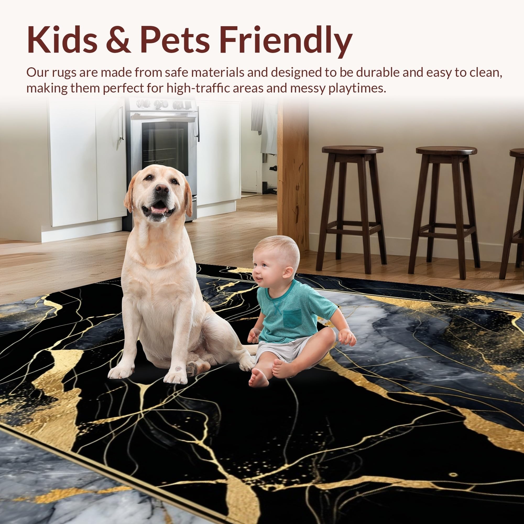Ultra Soft Area Rug, Non Slip, Stain Resistant, Washable Area Rugs for Living Room, Bedroom, Modern Opulent Artistic Design(Black) Overview: