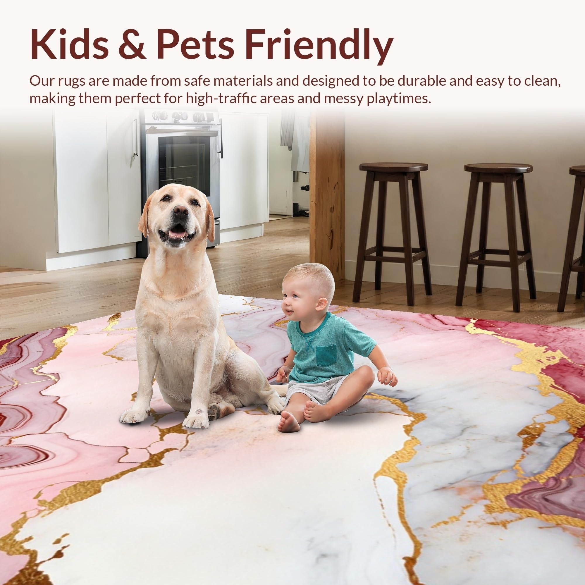 Ultra Soft Area Rug, Non Slip, Stain Resistant, Washable Area Rugs for Living Room, Bedroom, Modern Opulent Swirl Aesthetic(Pink) Overview: