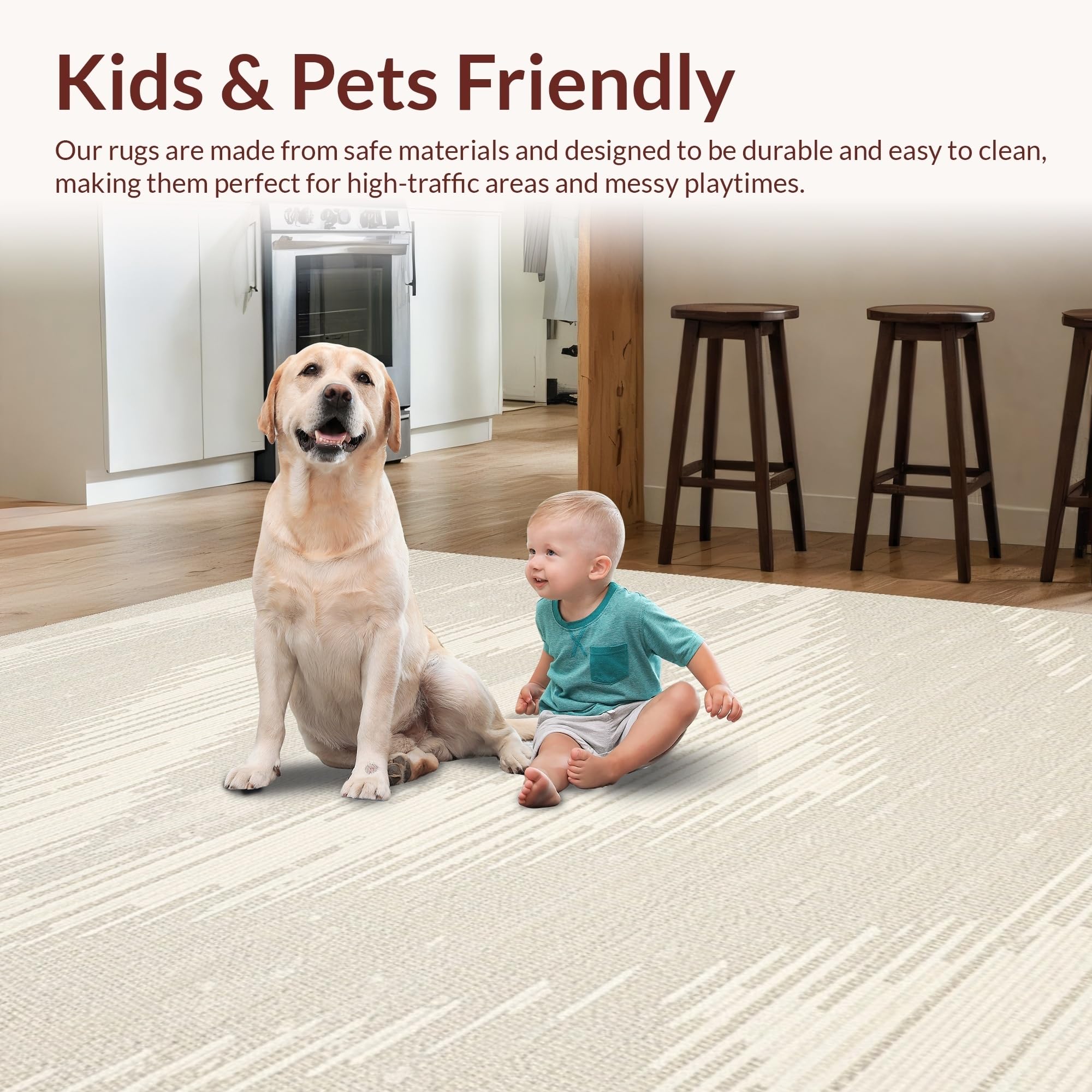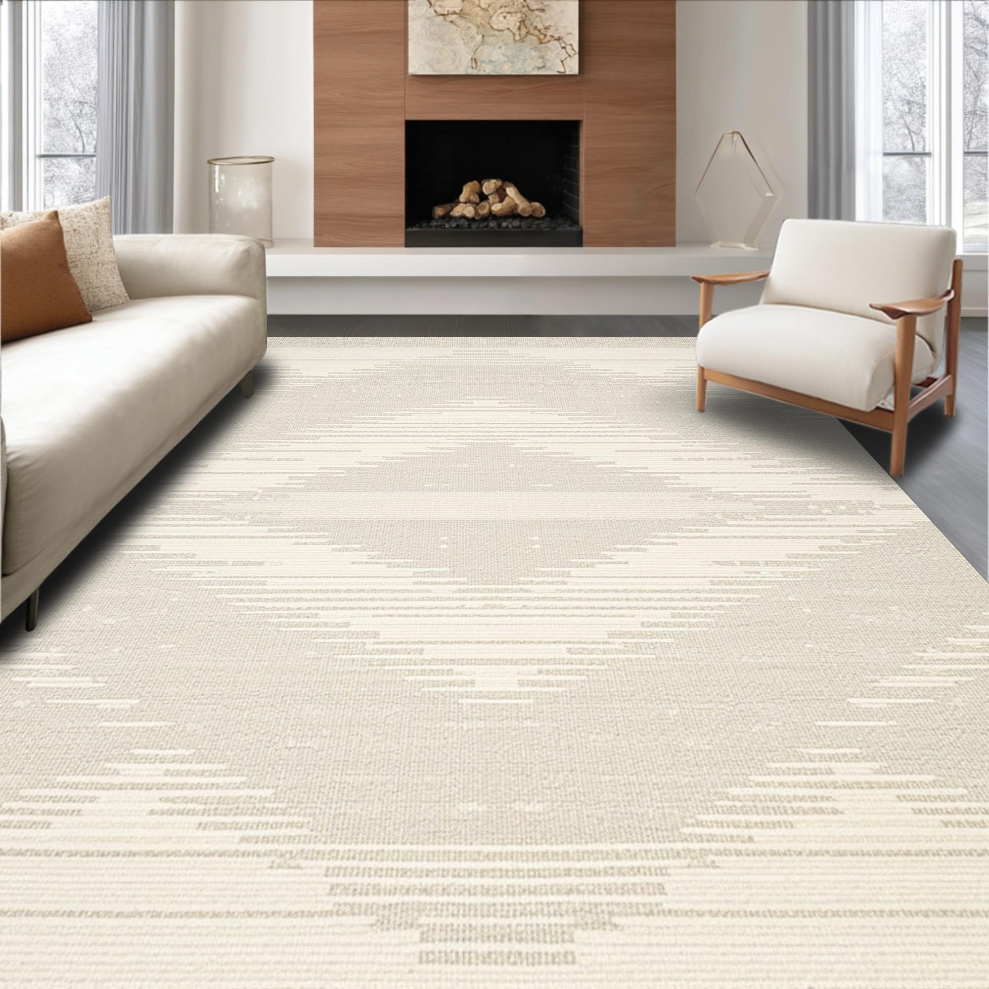 Ultra Soft Area Rug, Non Slip, Stain Resistant, Washable Area Rugs for Living Room, Bedroom, Modern Organic Curvilinear Style(Beige) Overview: